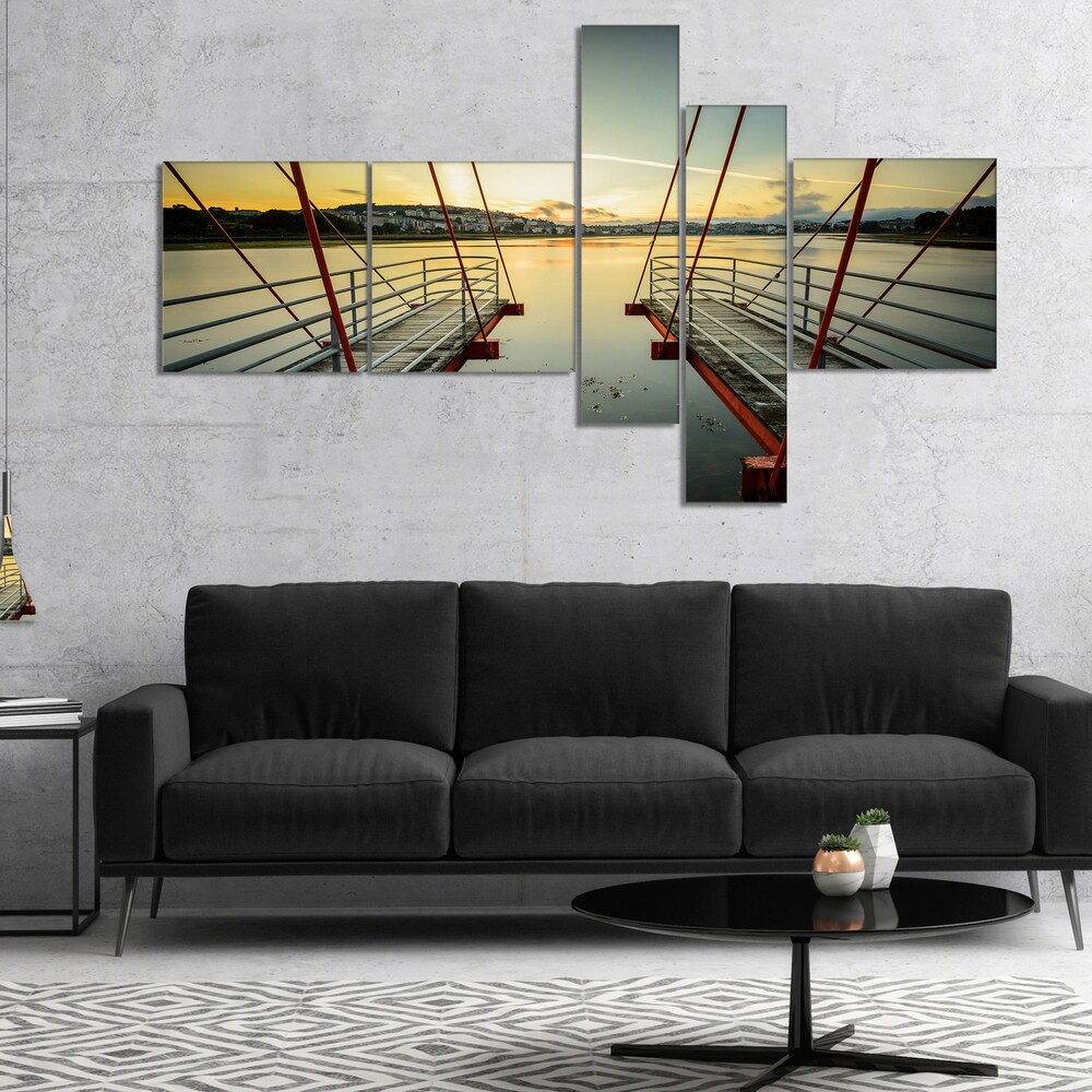 Designart "Wooden Piers for Boats in Spain" Seashore Photo Canvas Print