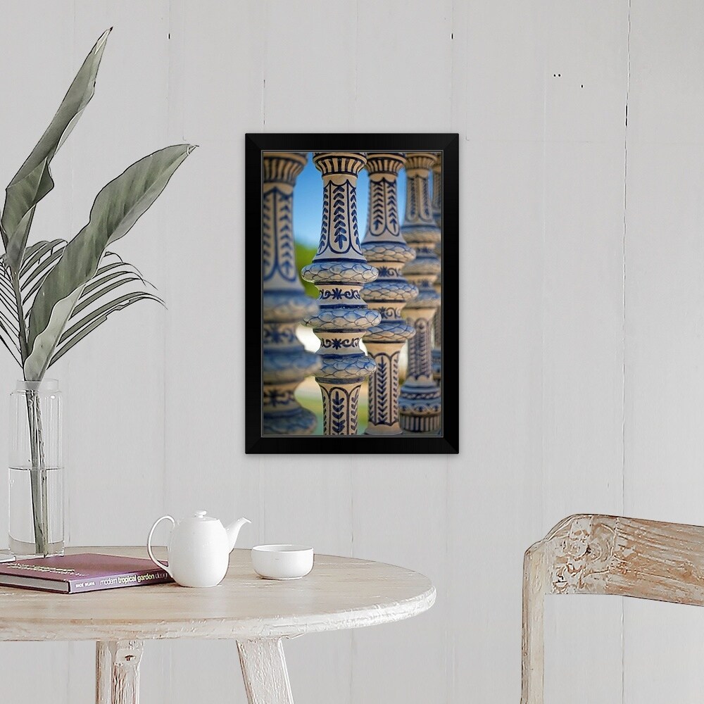 "Blue and white ceramic fence, Seville, Andalucia Spain." Black Framed Print