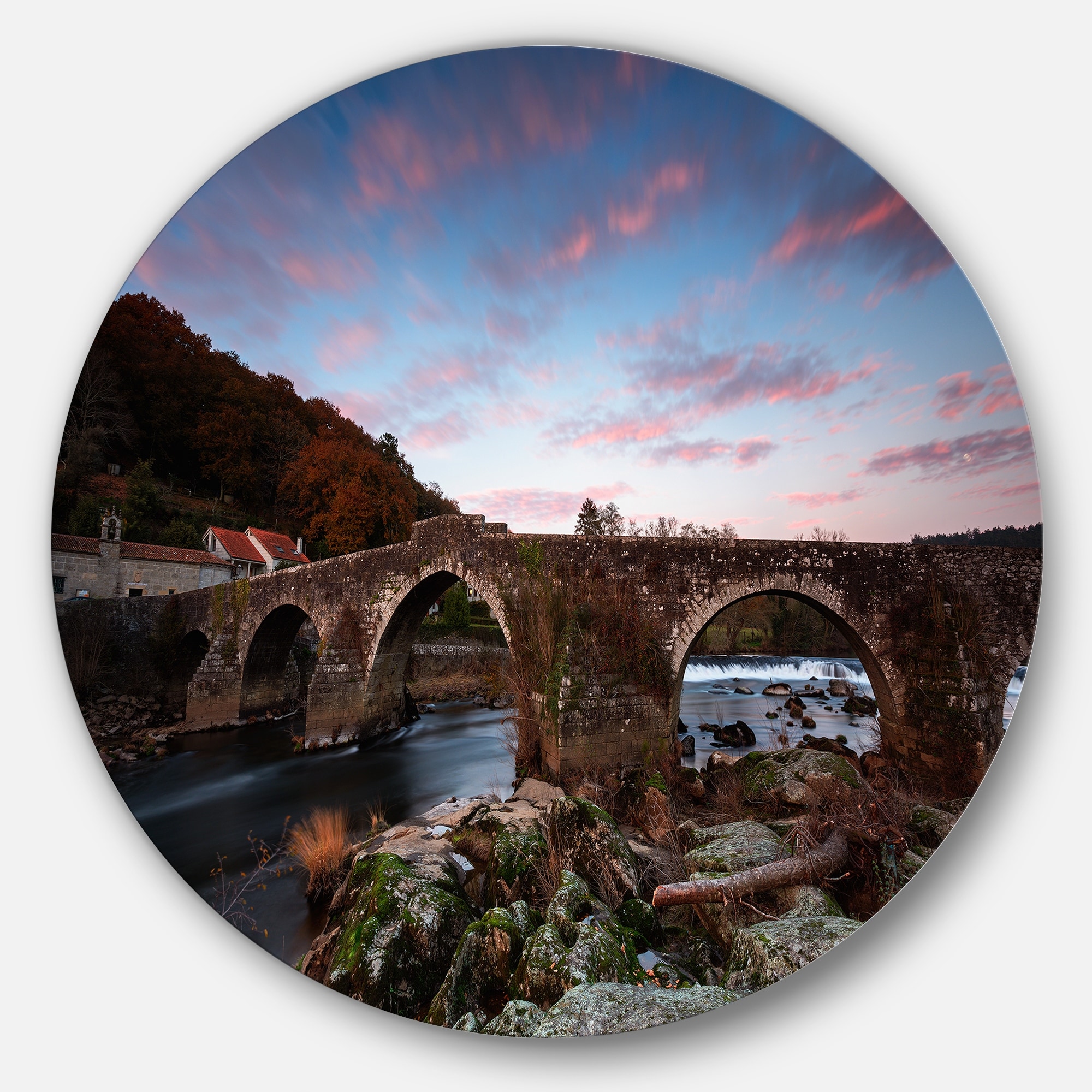 Designart 'Old Roman Bridge in Spain' Landscape Photo Disc Metal Artwork