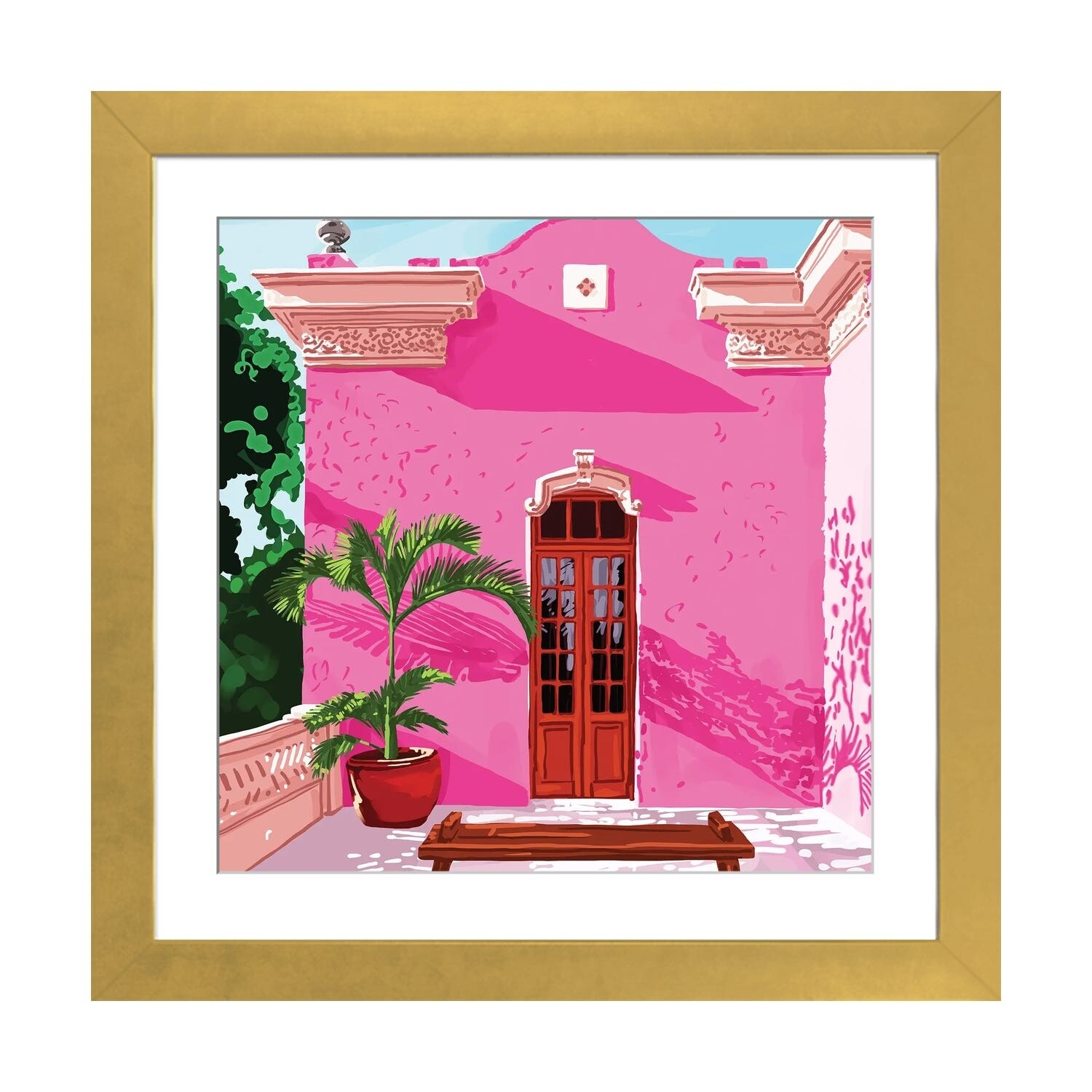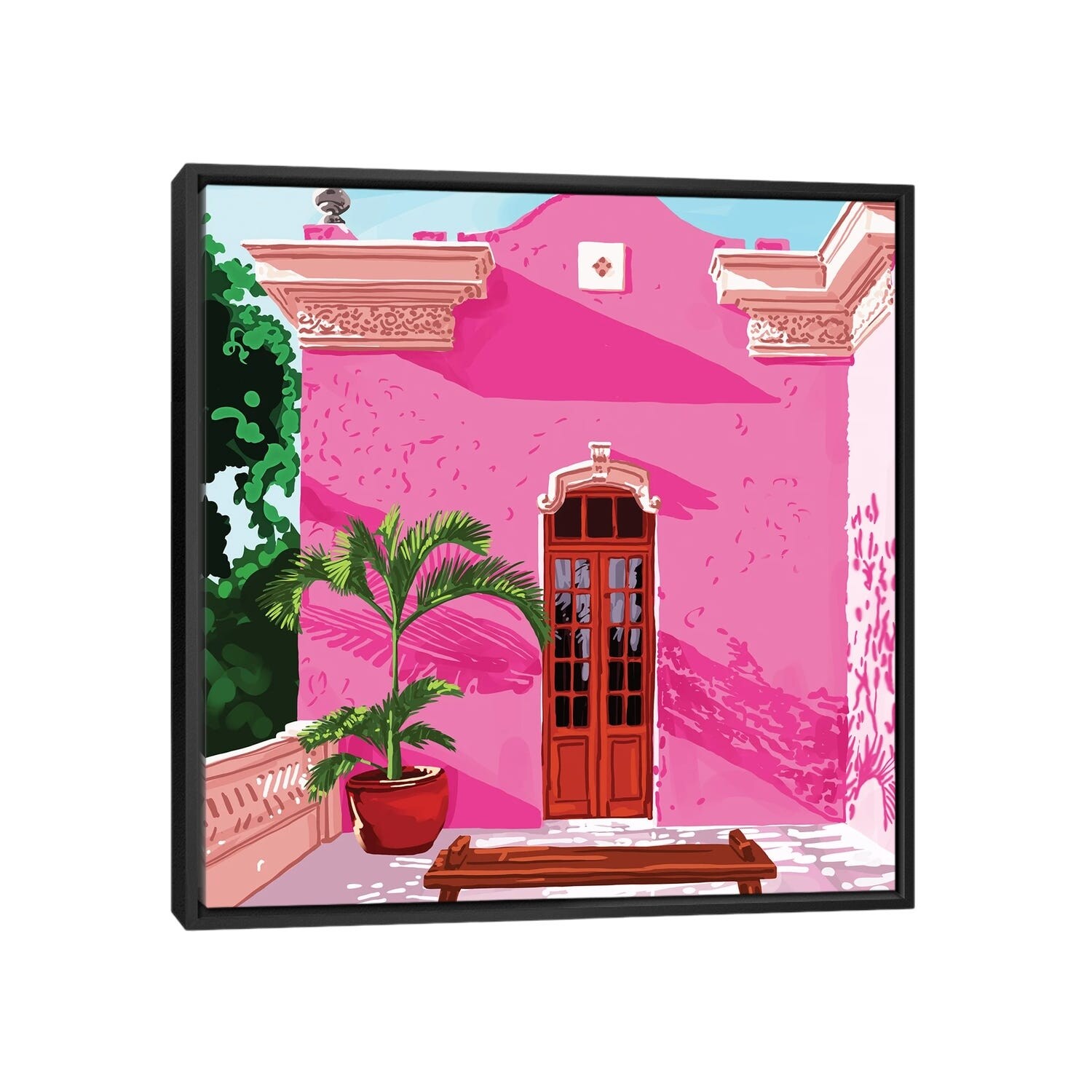 iCanvas "Pink Building, Exotic Modern Architecture, Travel Cities, Morocco, Tropical Spain" by 83 Oranges Framed Canvas Print
