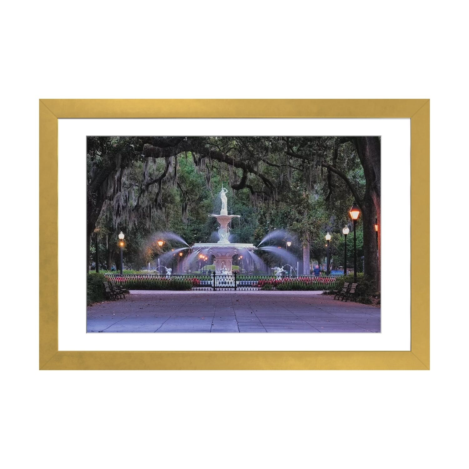 iCanvas "View Of the Forsyth Park Fountain Through Spanish Moss Draped Oak Trees" by George Oze Framed Canvas Print