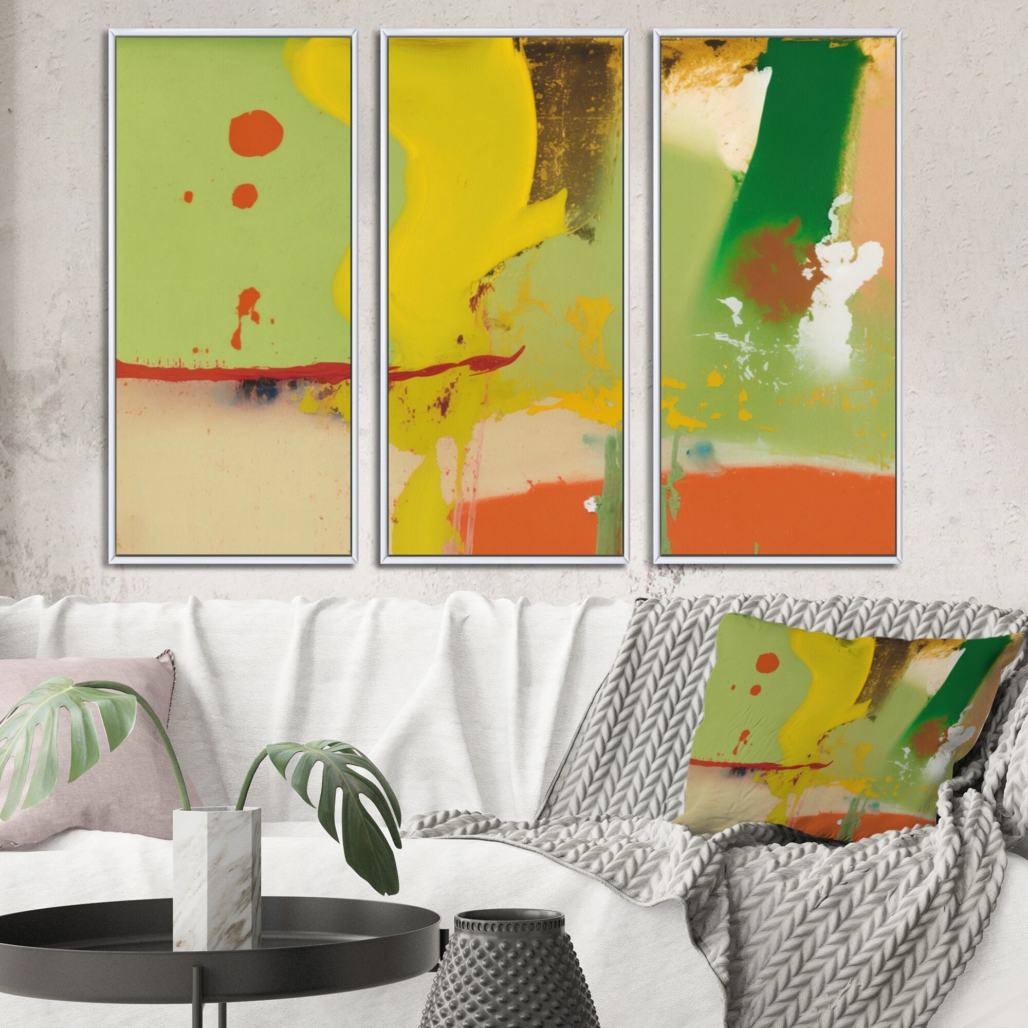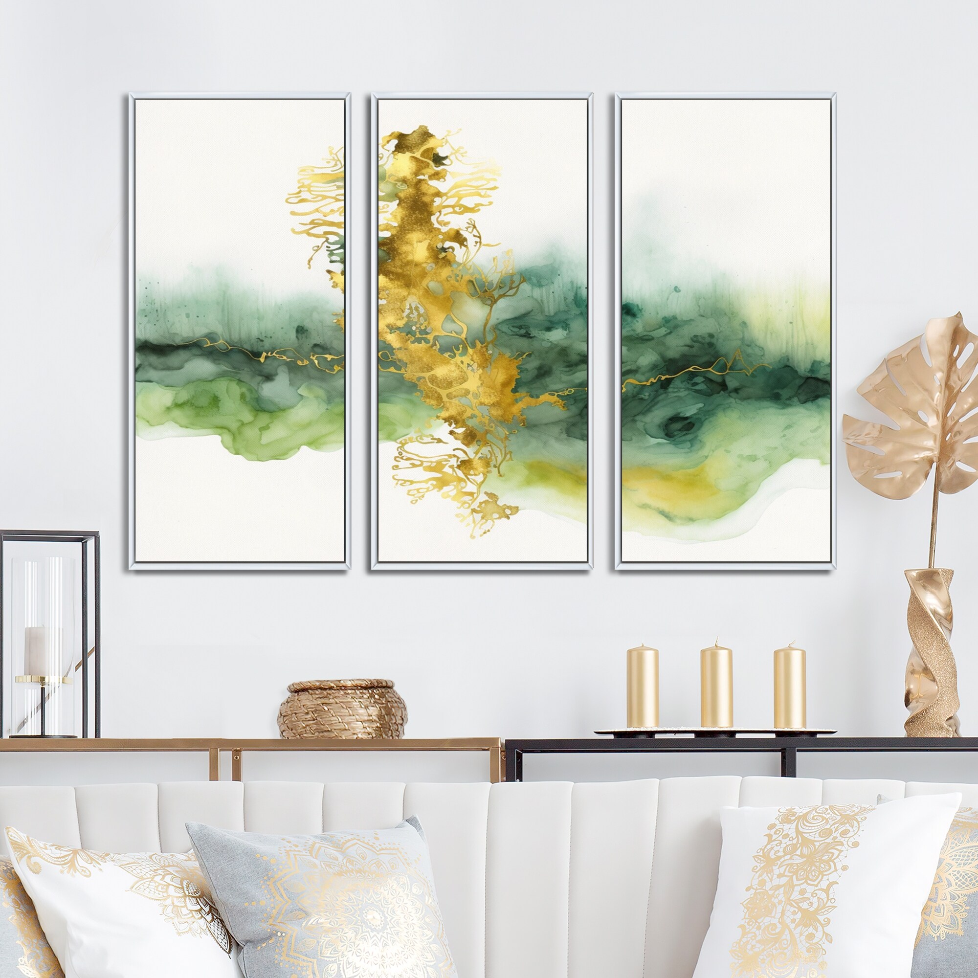 Designart "Awakenings In Spanish Moss IV" Abstract Liquid Ink Framed Canvas Wall Art Print - 3 Panels
