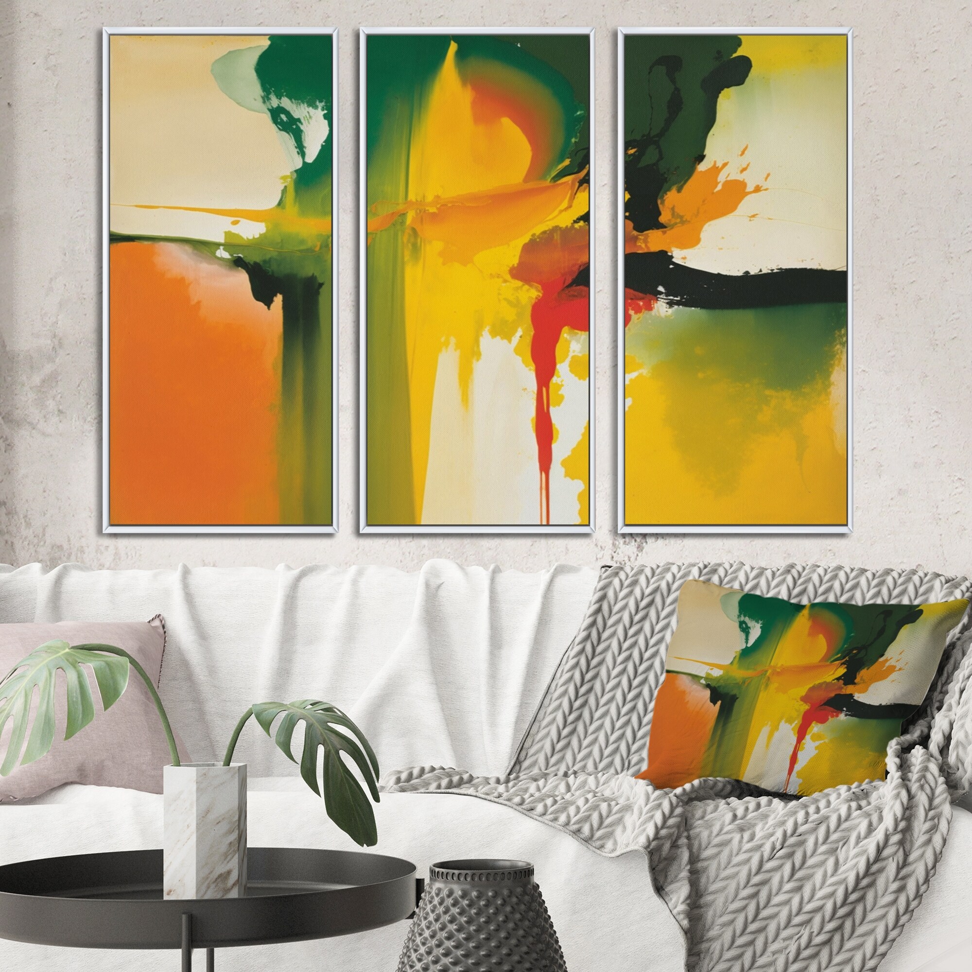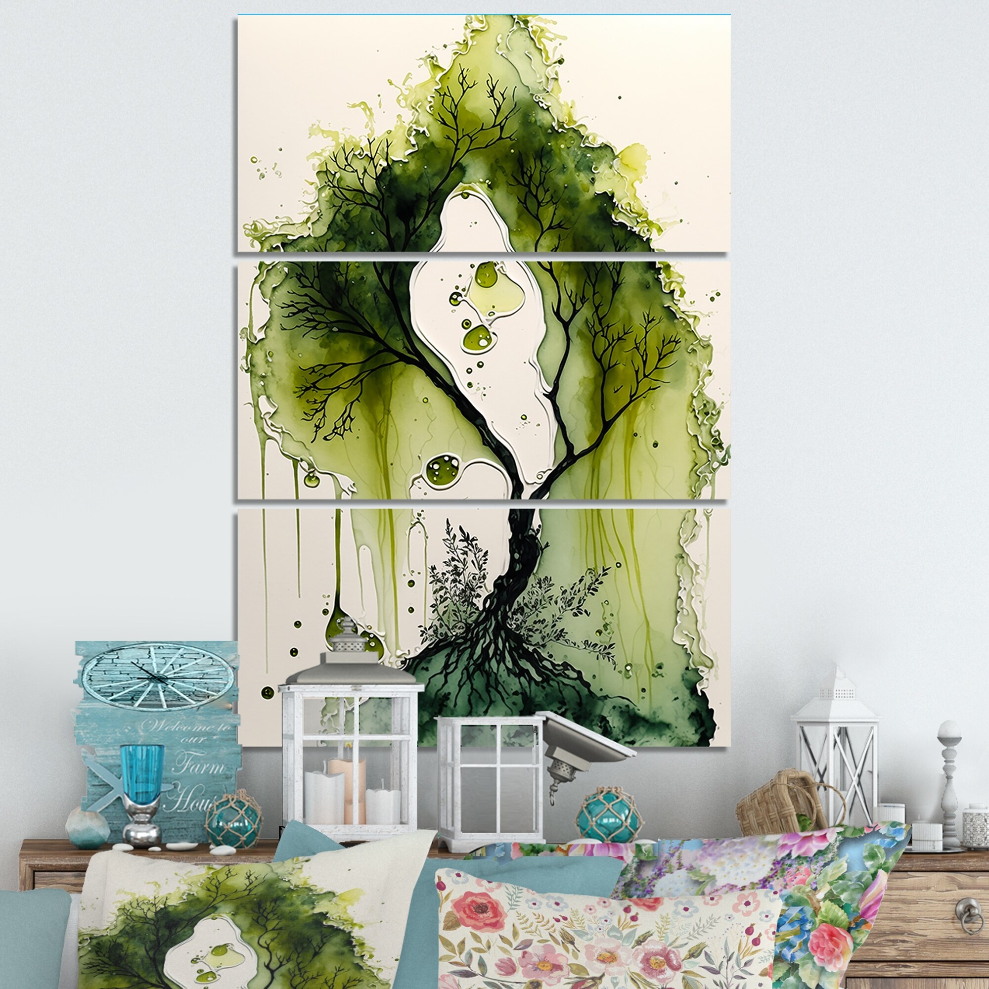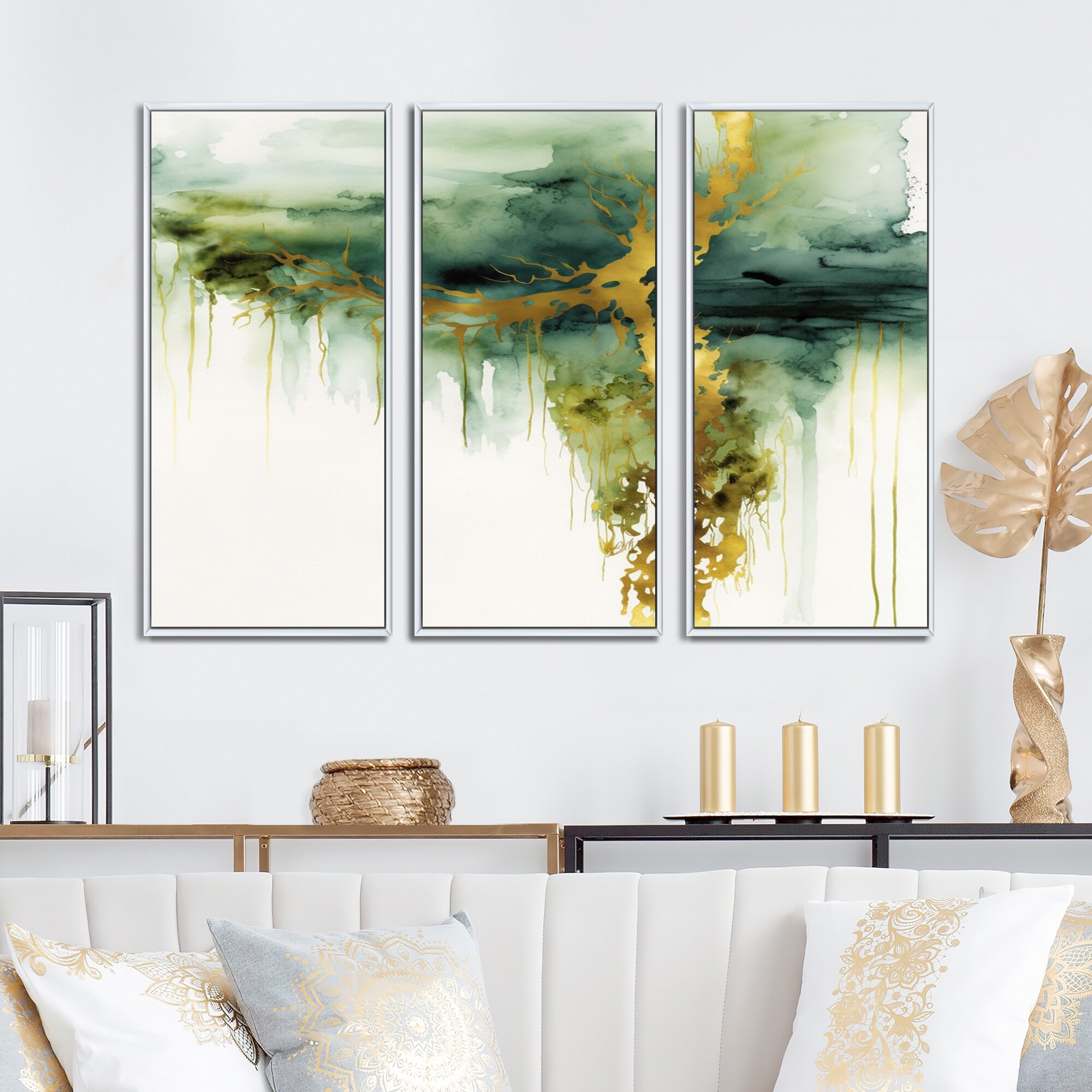 Designart "Awakenings In Spanish Moss II" Abstract Liquid Ink Framed Canvas Wall Art Print - 3 Panels