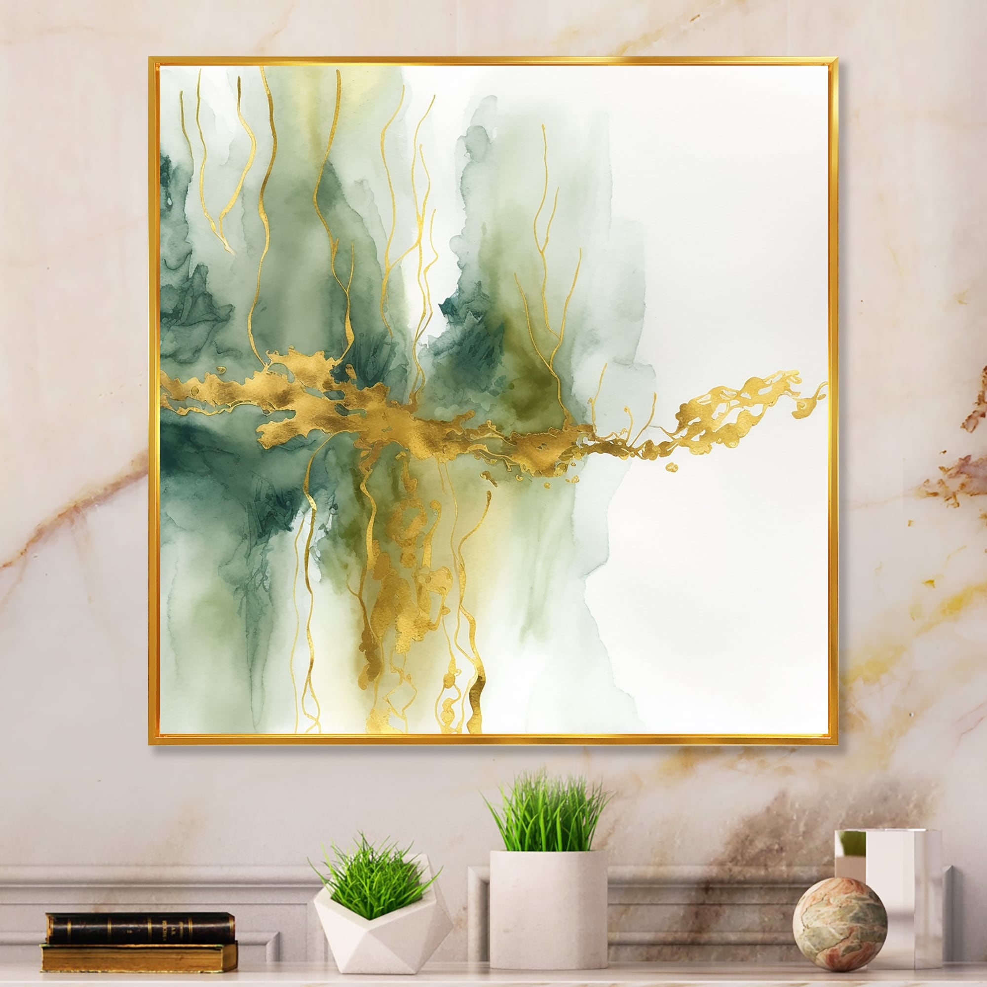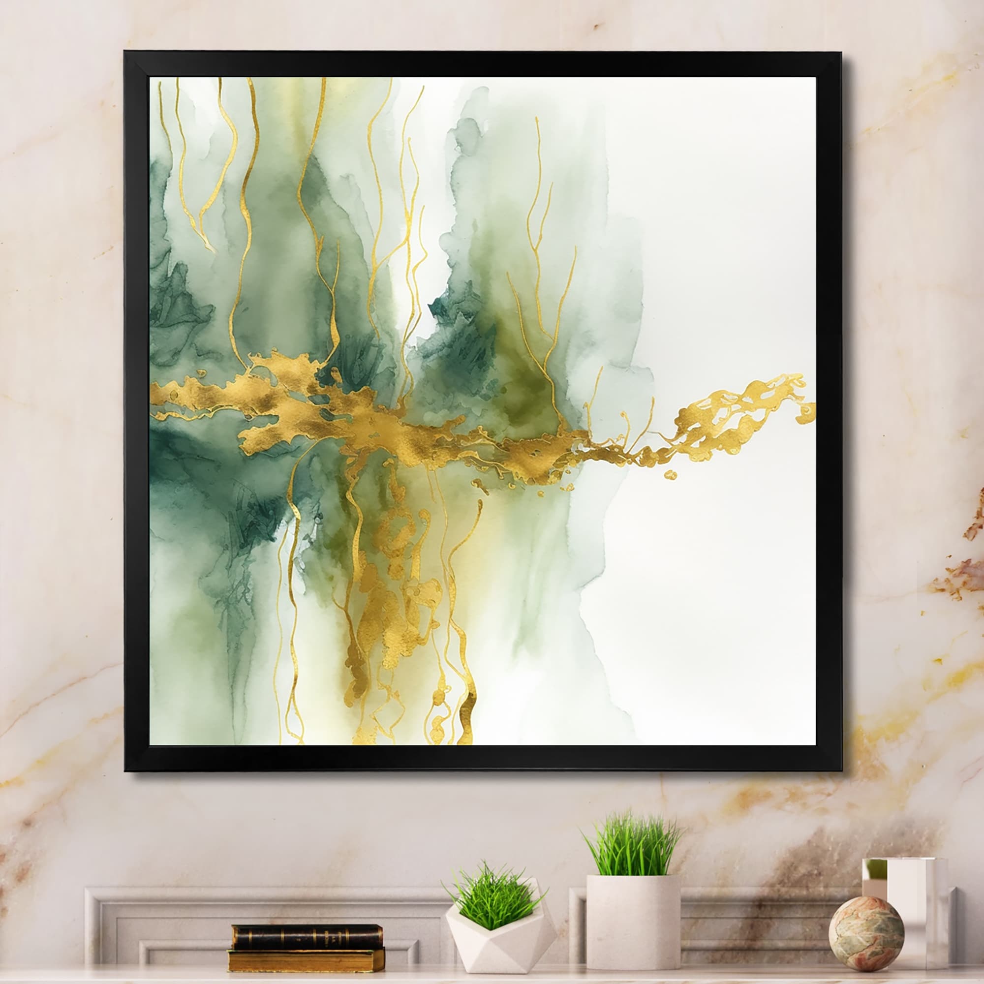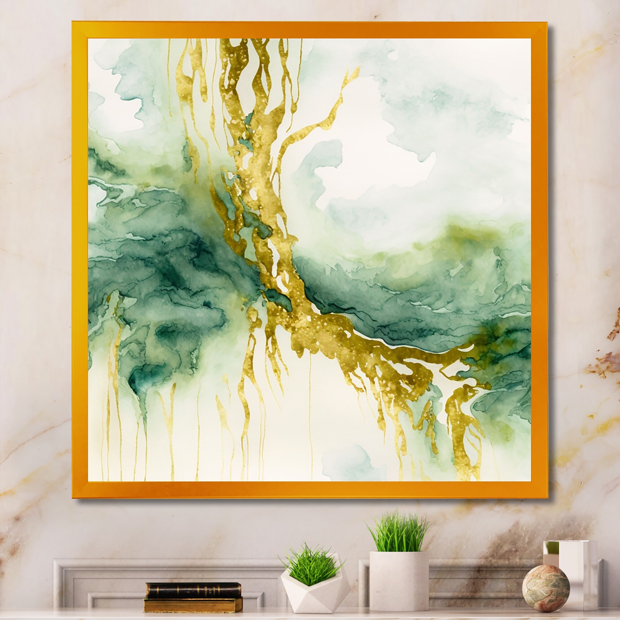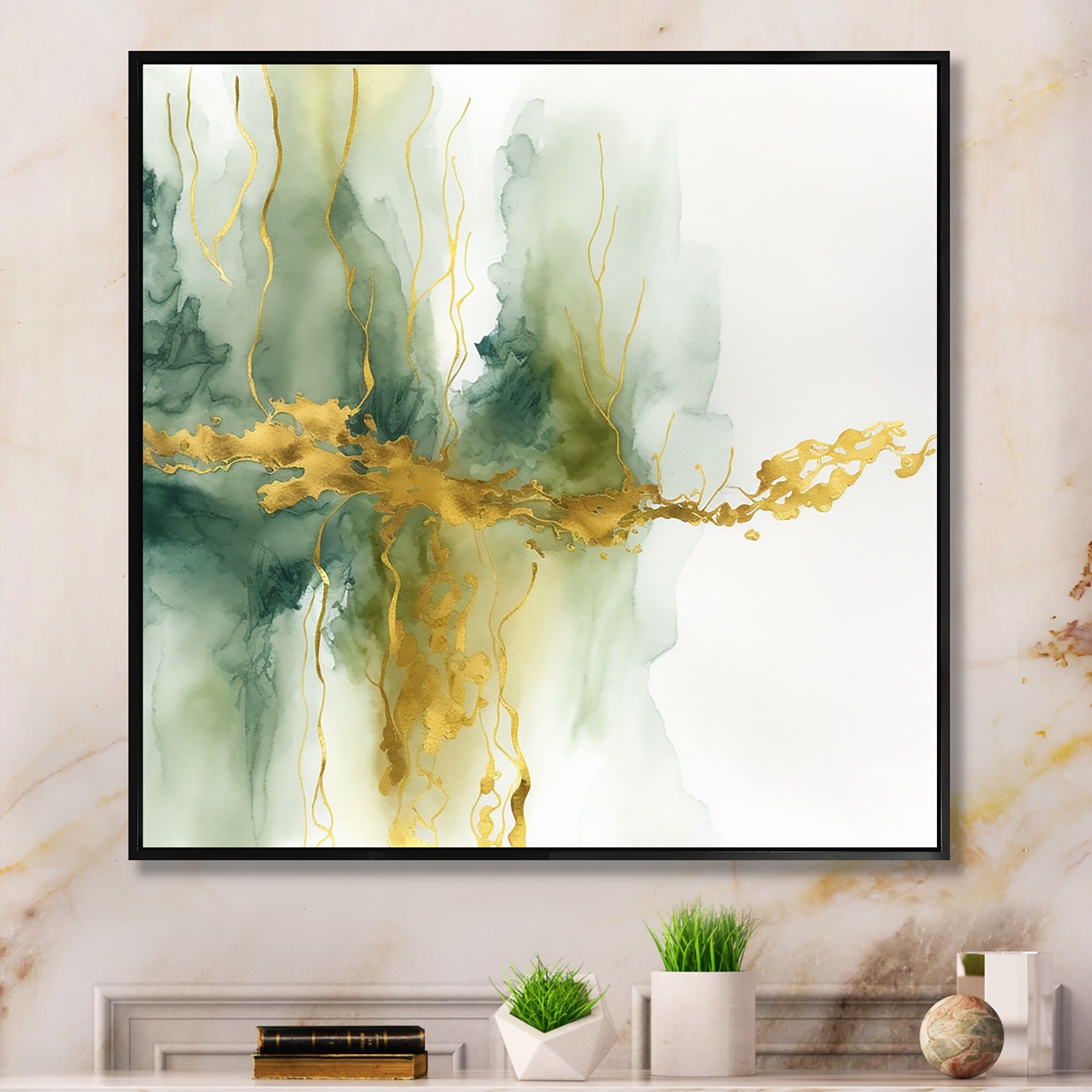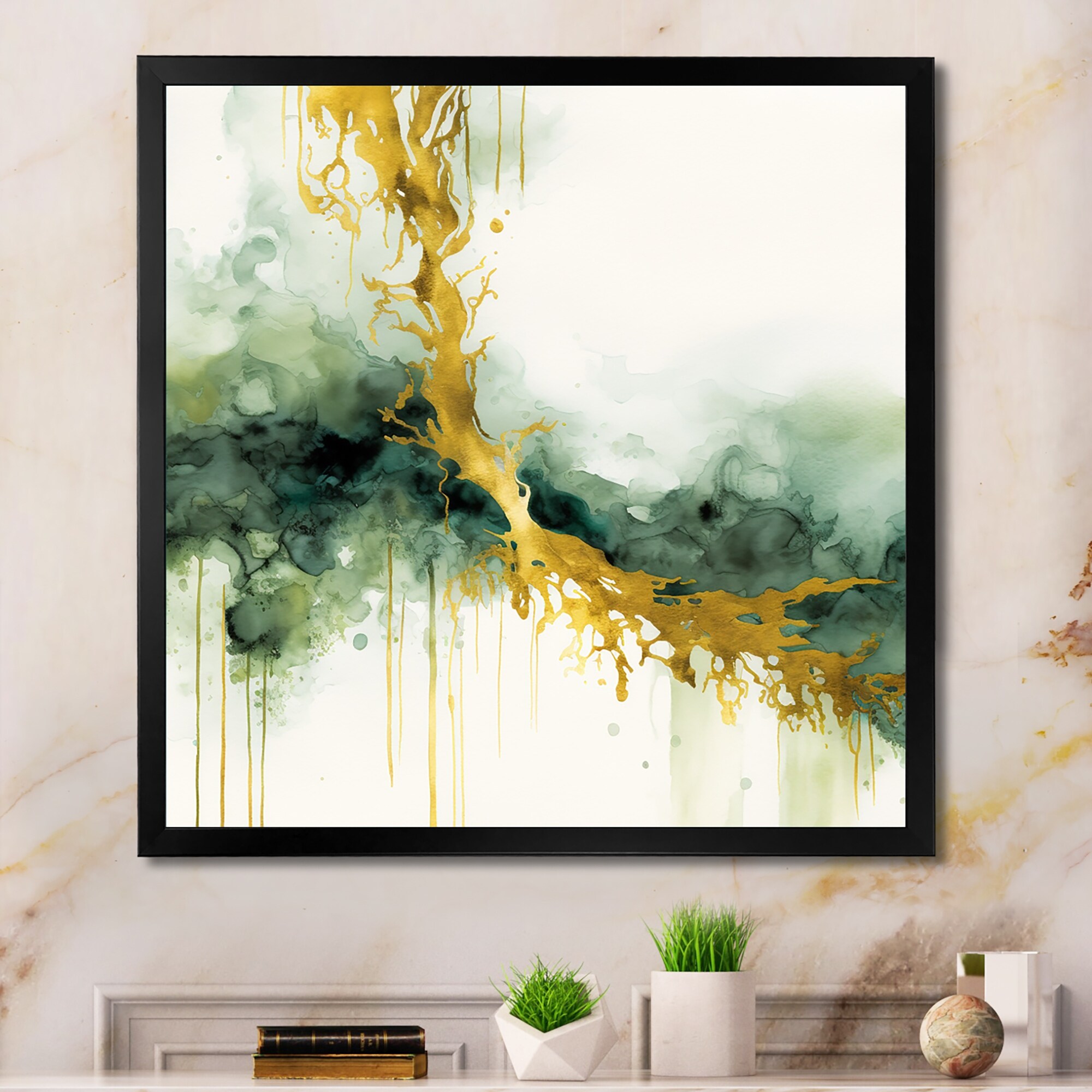 Designart "Awakenings In Spanish Moss" Abstract Liquid Ink Framed Canvas Wall Art Print
