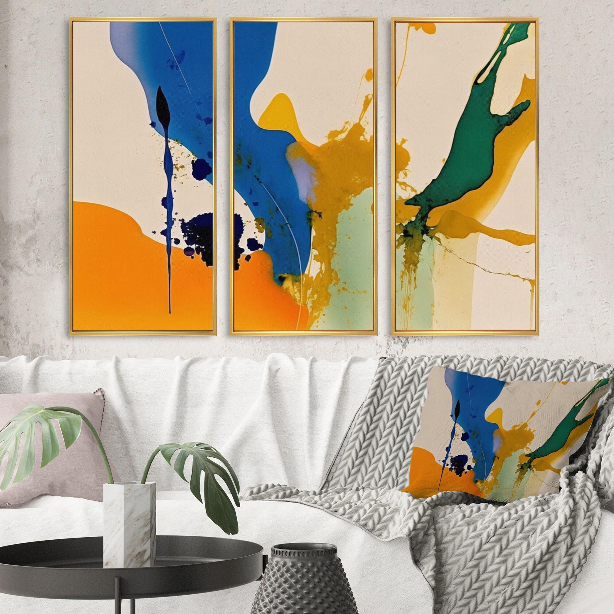 Designart "Awakenings In Spanish Moss III" Abstract Liquid Ink Framed Canvas Wall Art Print - 3 Panels