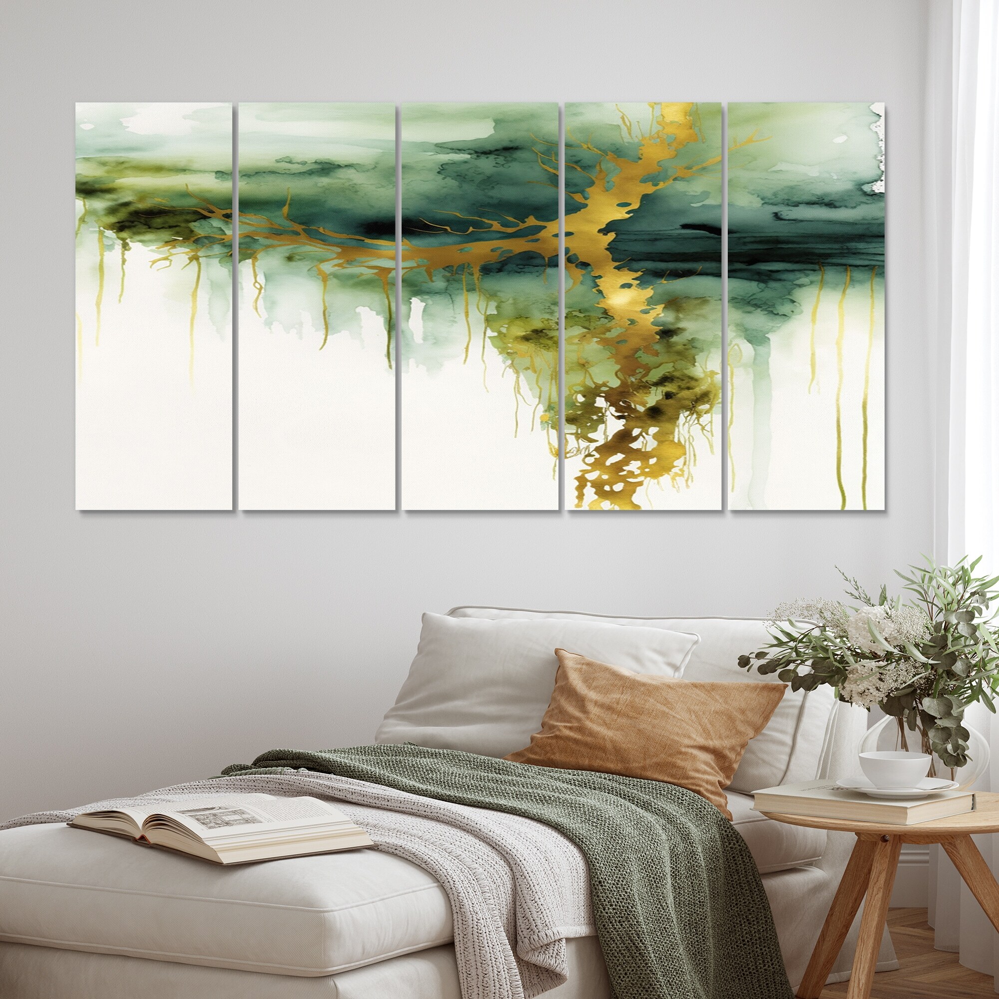 Designart "Awakenings In Spanish Moss IV" Abstract Liquid Ink Multipanel Canvas Print