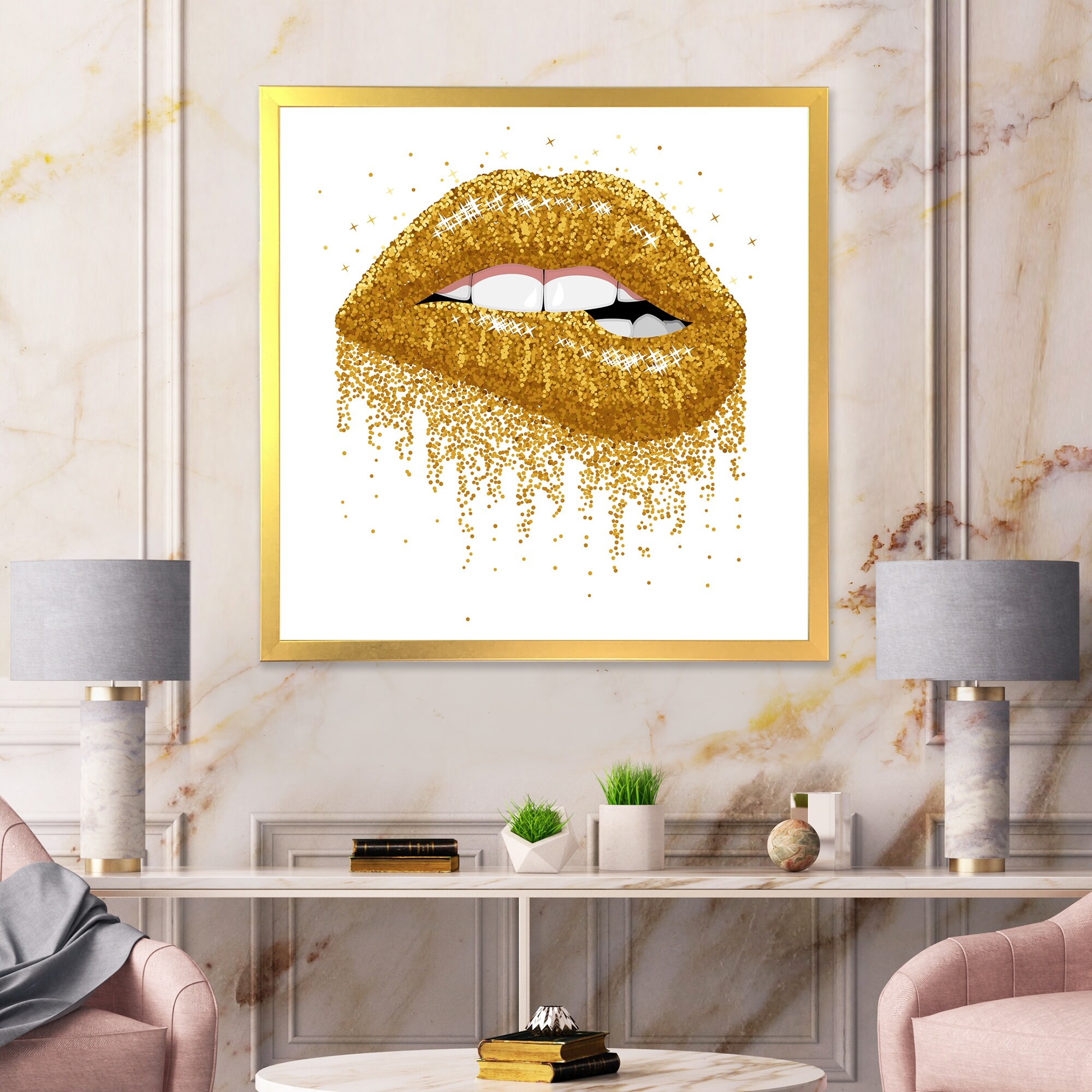 Designart "Woman Lips With Glitter Gold Sparkles" Modern Framed Art Print