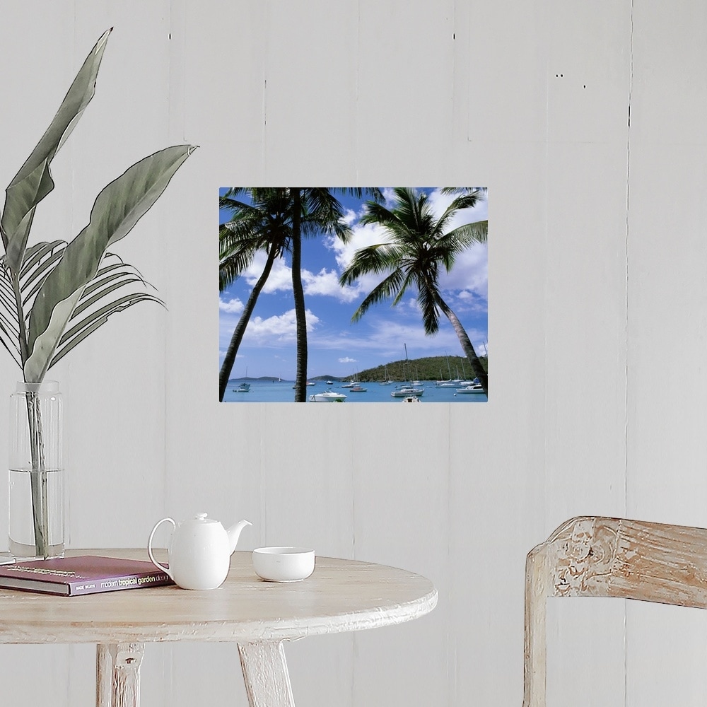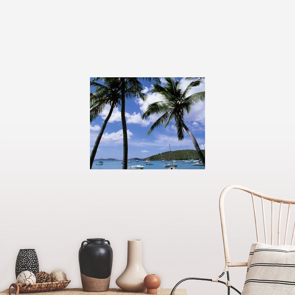 "US Virgin Islands, St. John, Cruz Bay, Palm trees on the beach" Poster Print