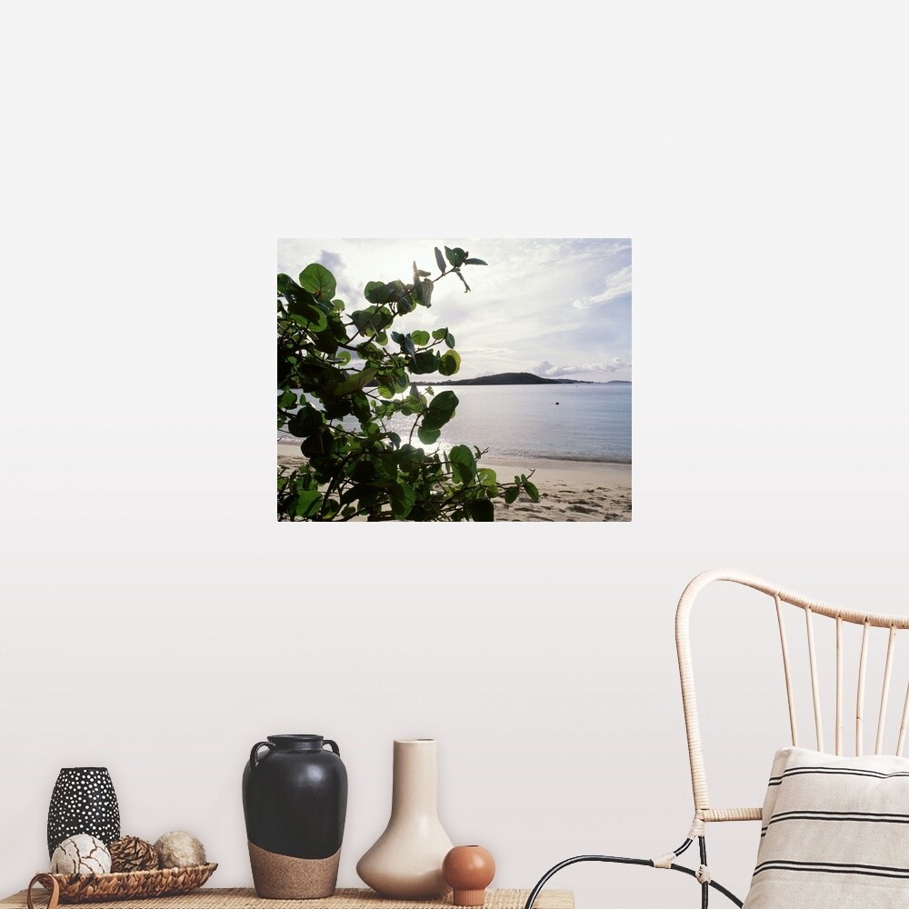 "US Virgin Islands, St. John, Gibney's Beach, Seagrape tree on the beach" Poster Print