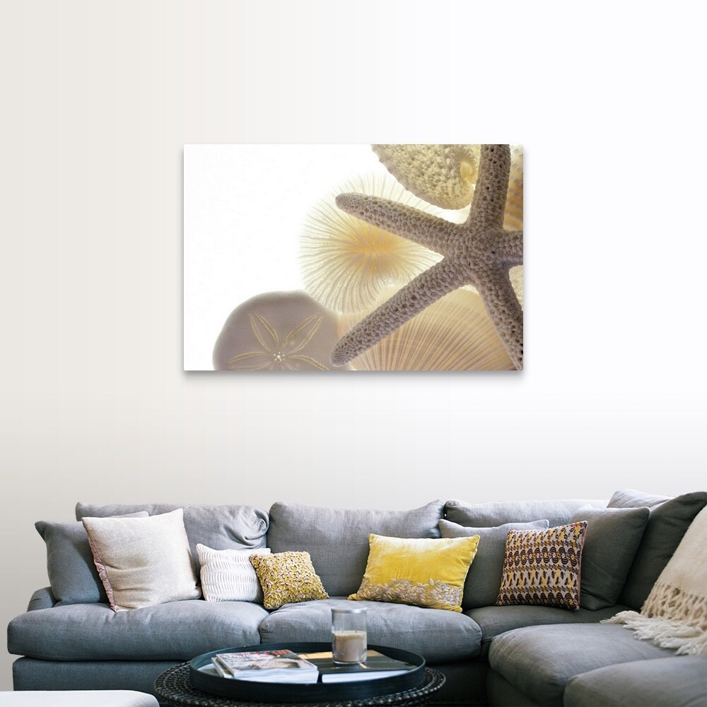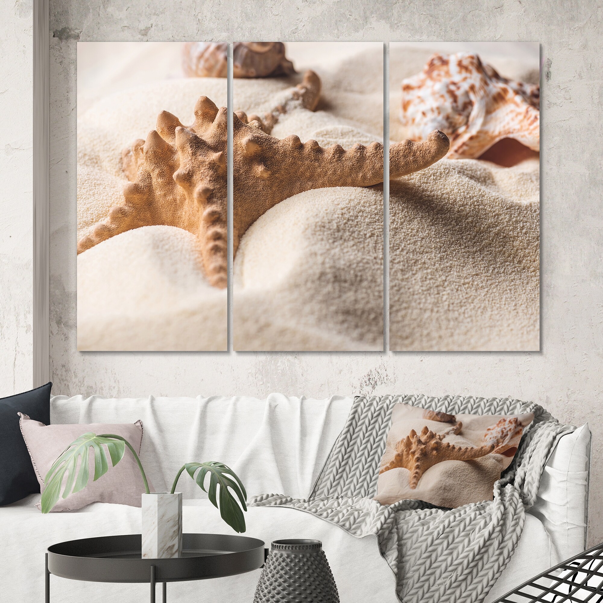 Designart "Starfish And Seashells Ii" Modern Landscape Beach Canvas Prints