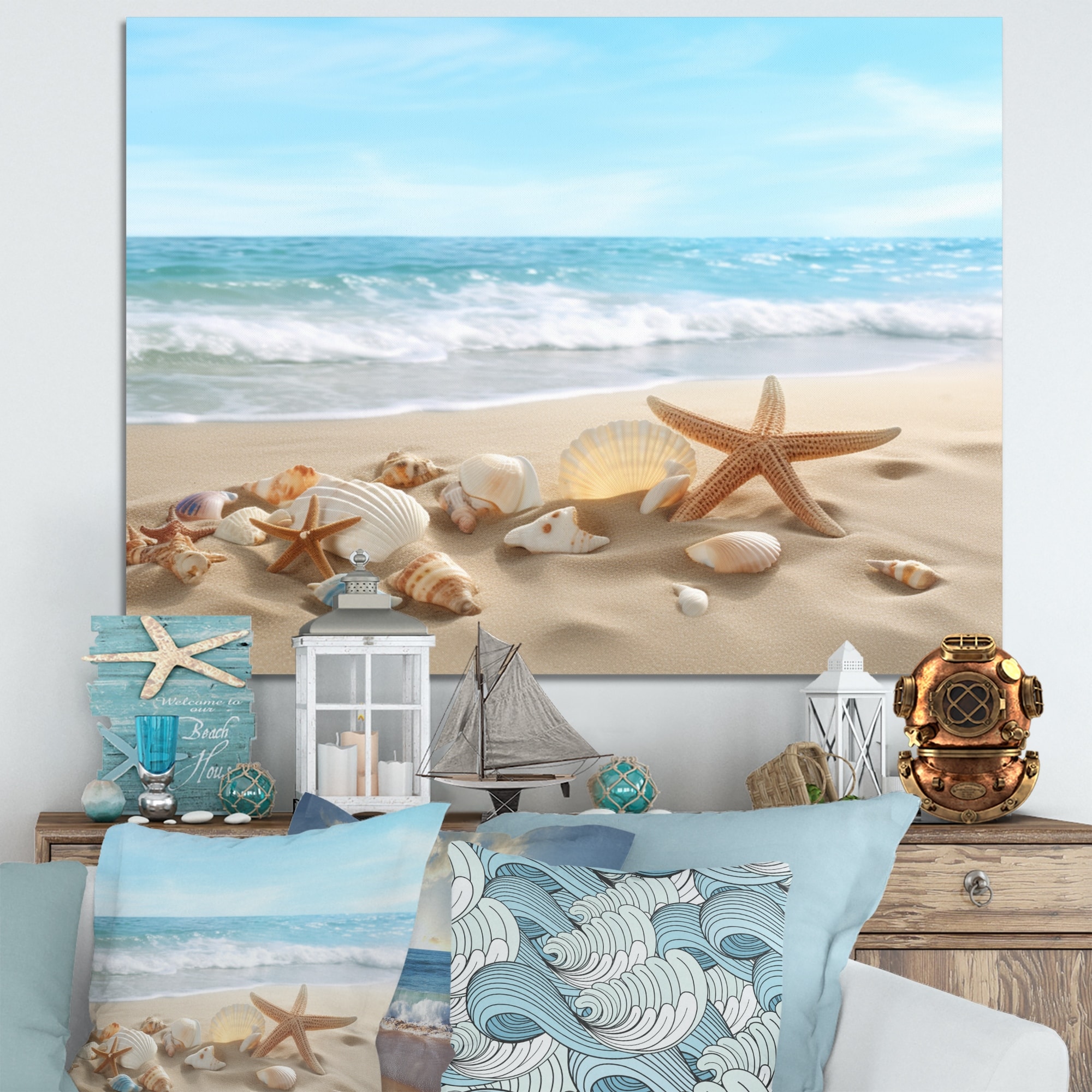 Designart "Starfish And Seashells V" Modern Landscape Beach Canvas Print