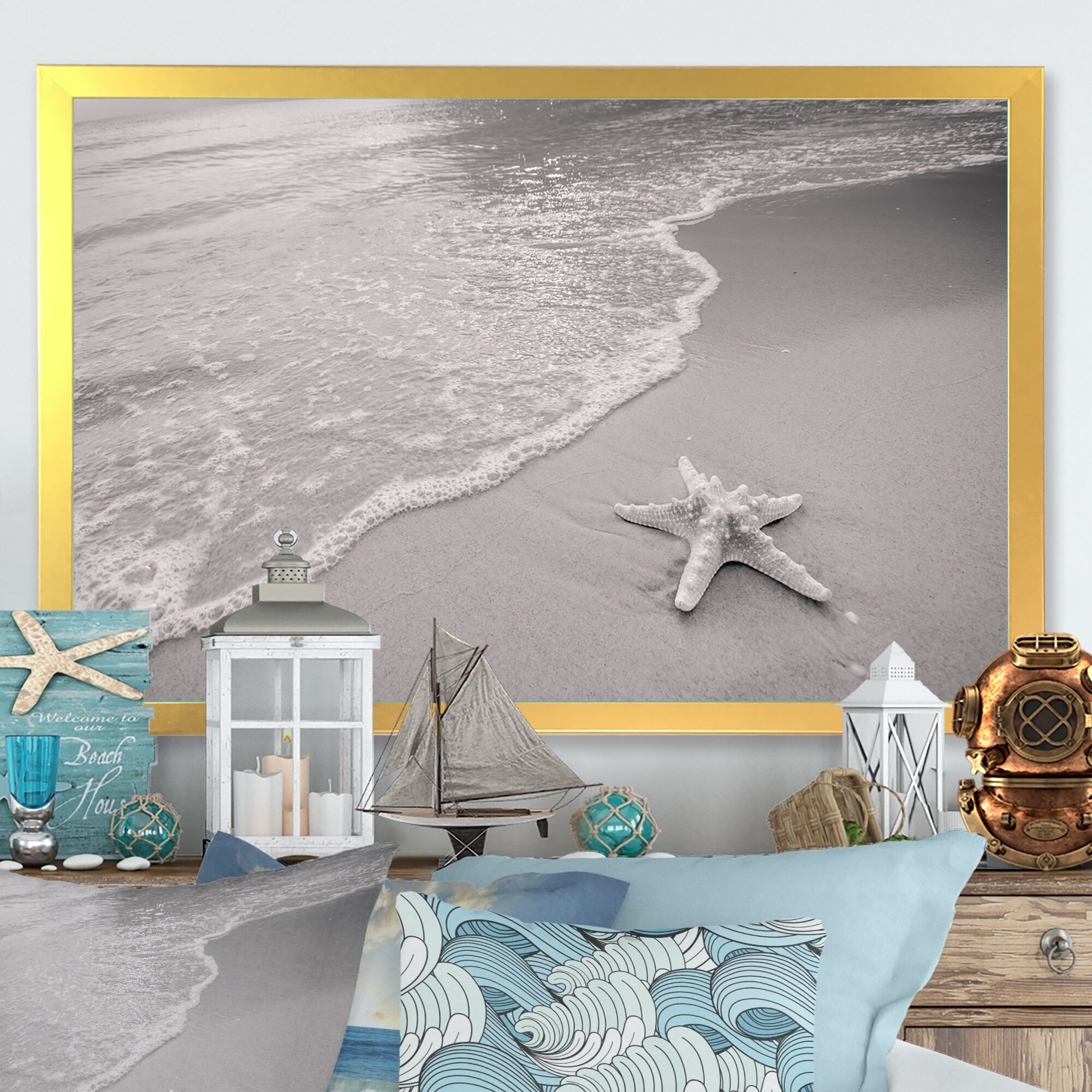 Designart "Black And White Starfish on the Beach" Nautical & Coastal Framed artwork
