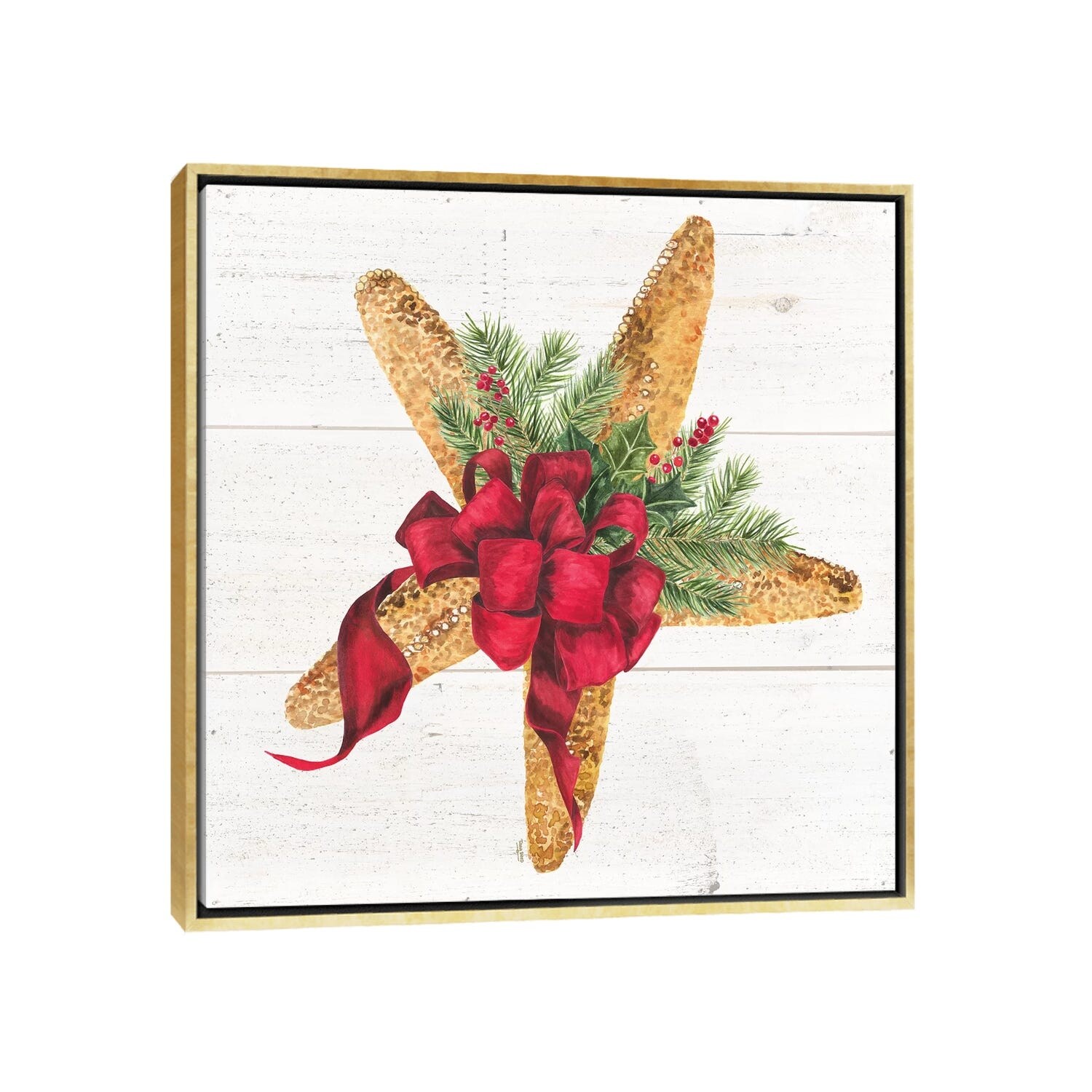 iCanvas "Christmas By the Sea Starfish square" by Tara Reed Framed