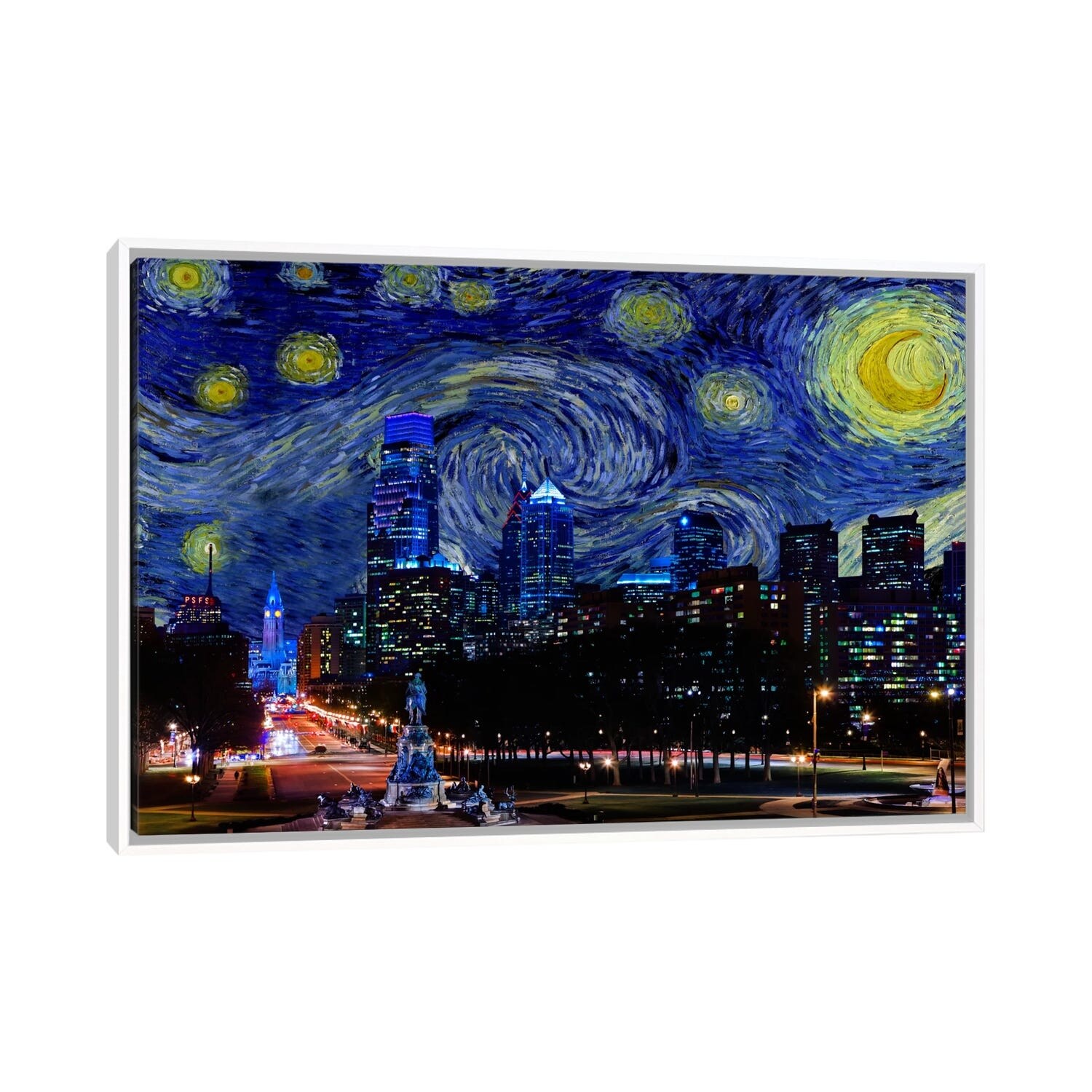 iCanvas "Philadelphia, Pennsylvania Starry Night Skyline" by 5by5collective Framed Canvas Print