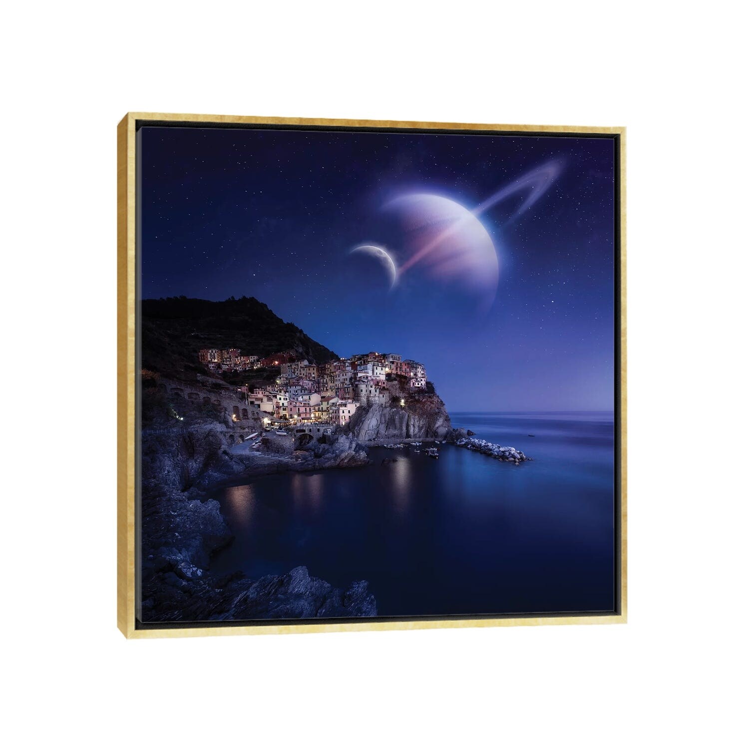 iCanvas "View Of Manarola on A Starry Night With Planets, Northern Italy" by Evgeny Kuklev Framed Canvas Print