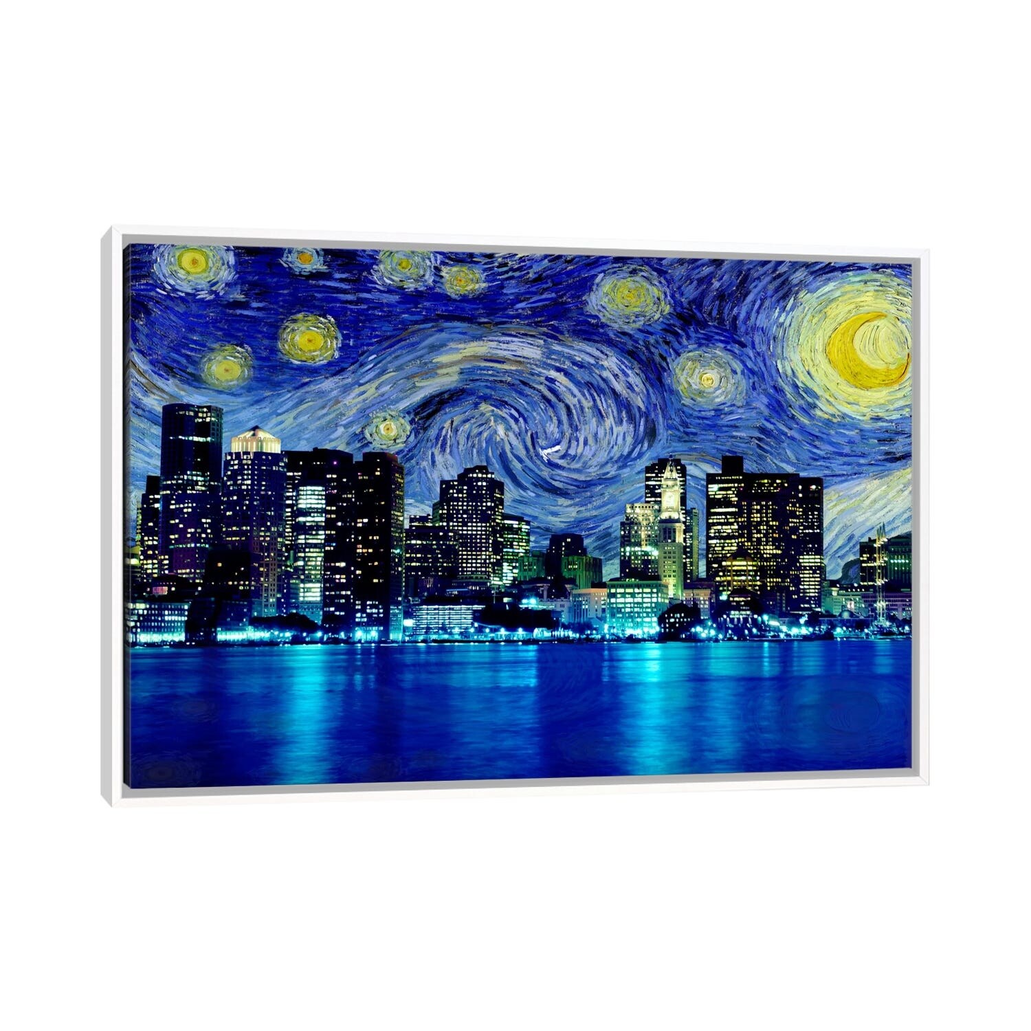 iCanvas "Boston, Massachusetts Starry Night Skyline" by 5by5collective Framed Canvas Print