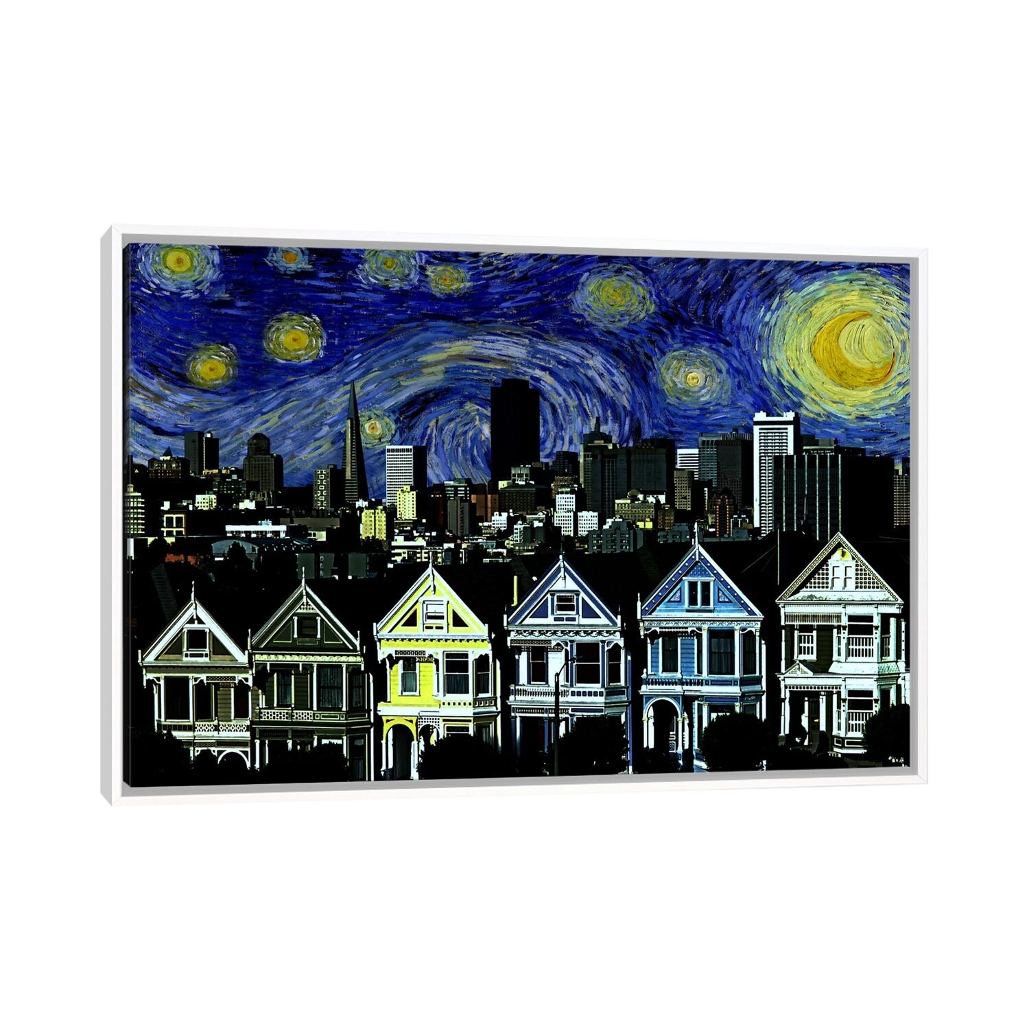iCanvas "San Francisco, California Starry Night Skyline" by 5by5collective Framed Canvas Print