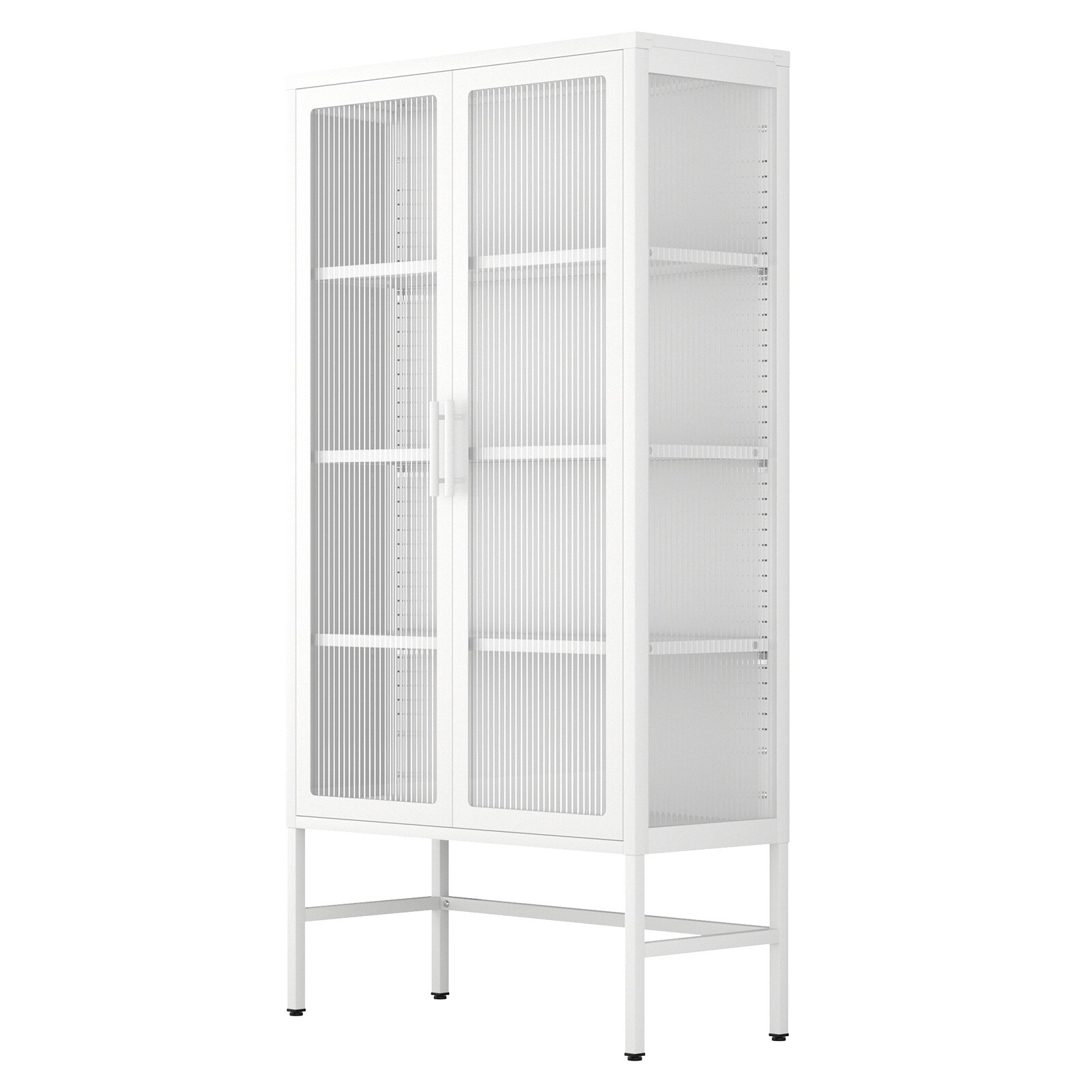 Glass Door Storage Cabinet with Adjustable Shelves Steel Sideboard