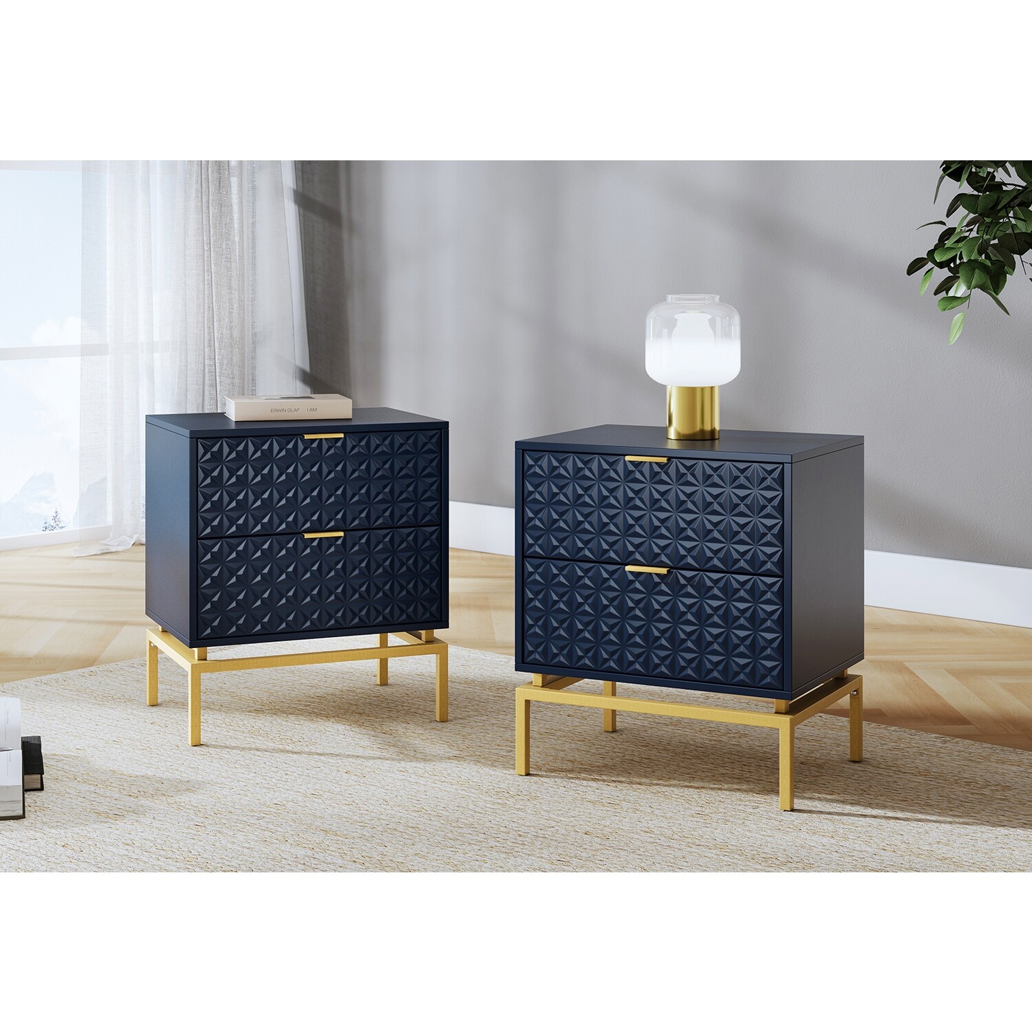 Volkard 25" Mid-century Storage Nightstand with 2 Drawers Set of 2 by HULALA HOME