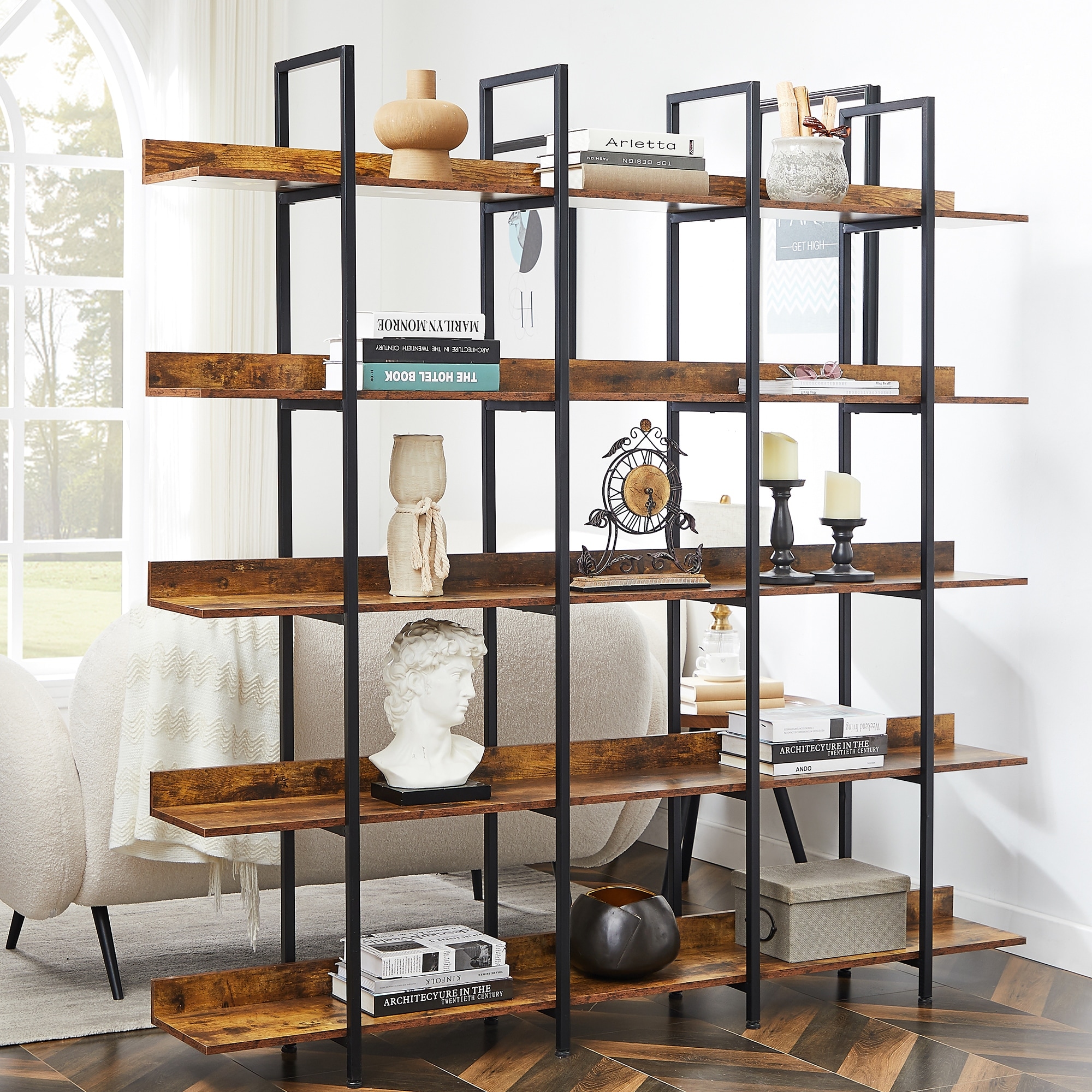 5Tier Industrial Bookshelf Freestanding Bookcases Open Display Storage - 70.9"H
