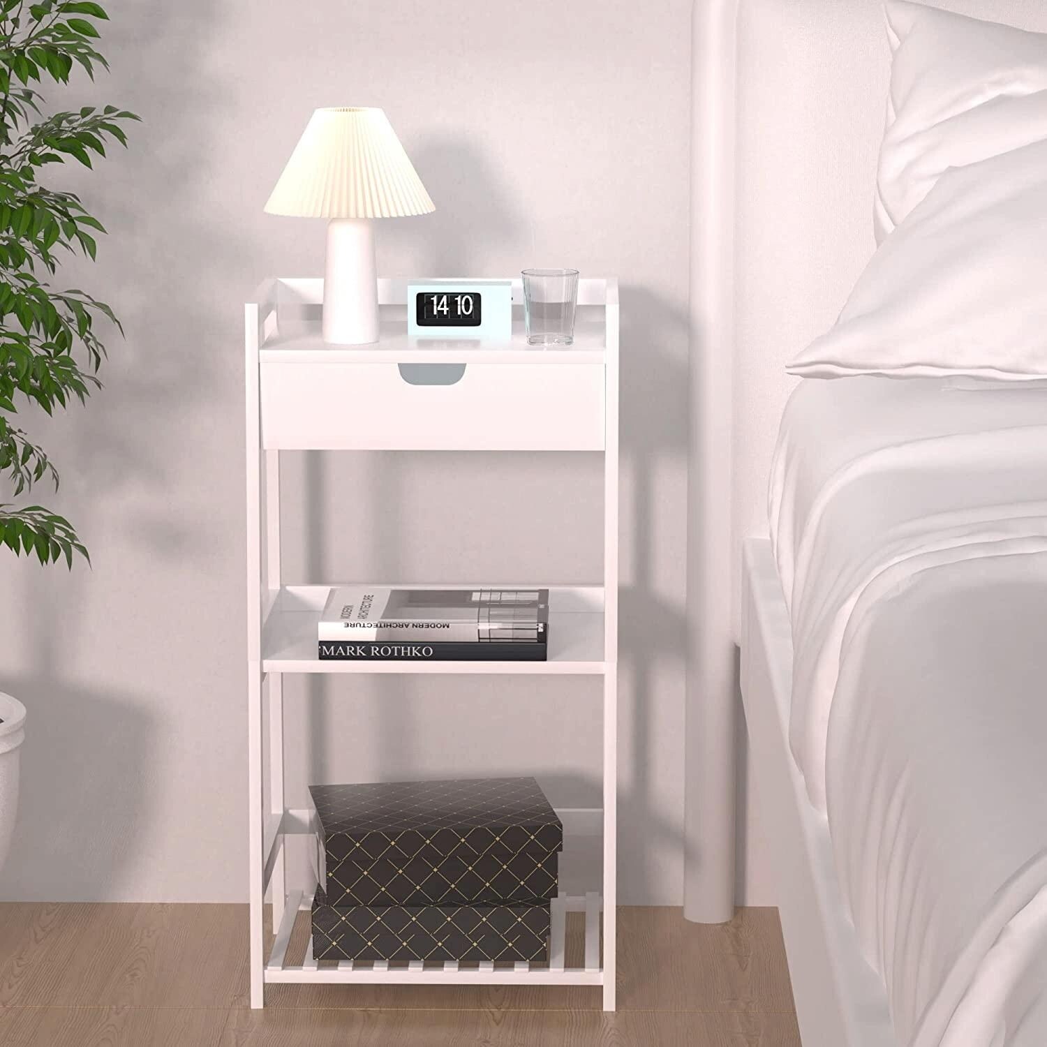 Bamboo 3-Tier Bathroom Shelves: Ladder Shelf with Drawers, Multi-purpose Storage for Living Room, Bedroom, Kitchen
