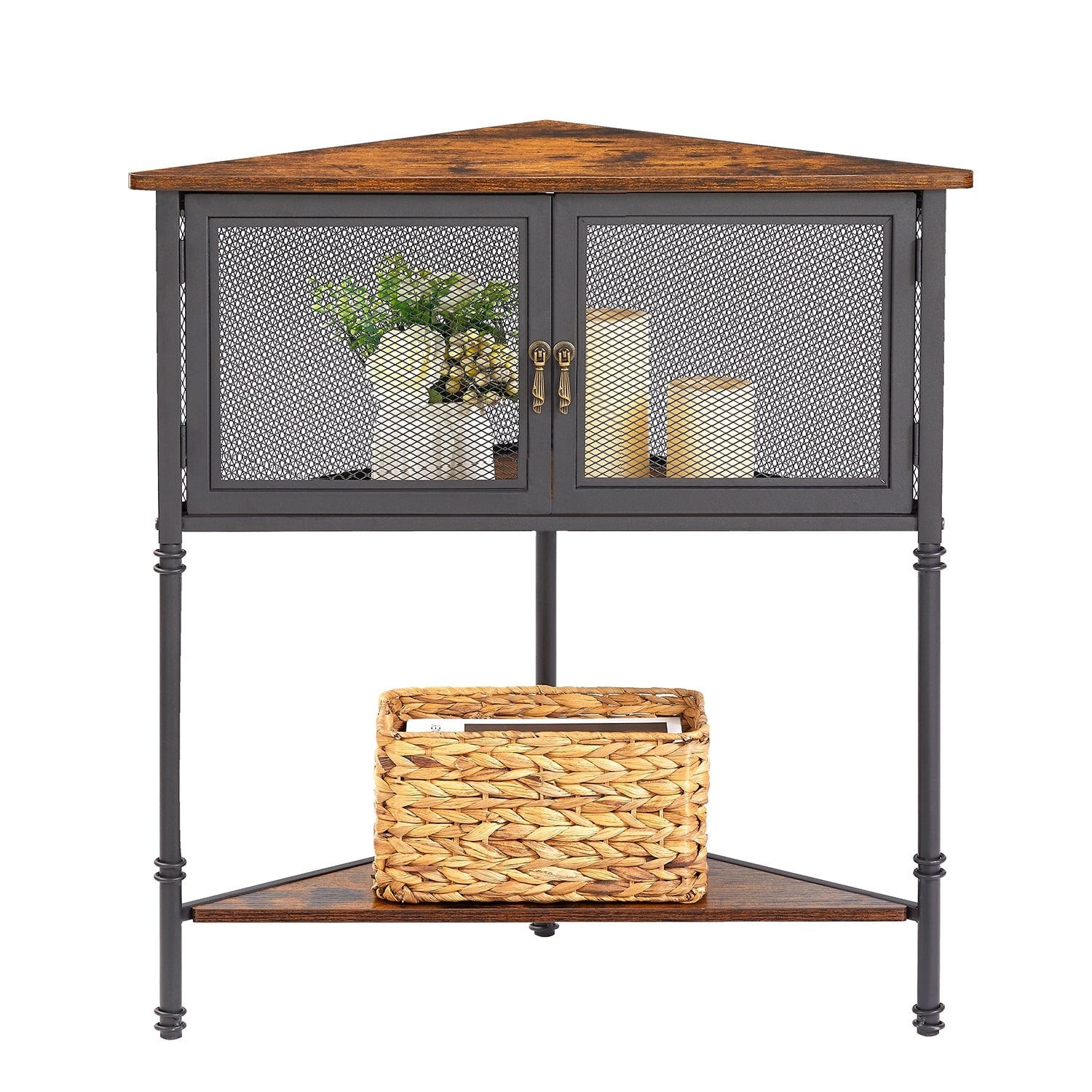VECELO 3-Tier Corner Shelf with Storage Cabinet and Doors