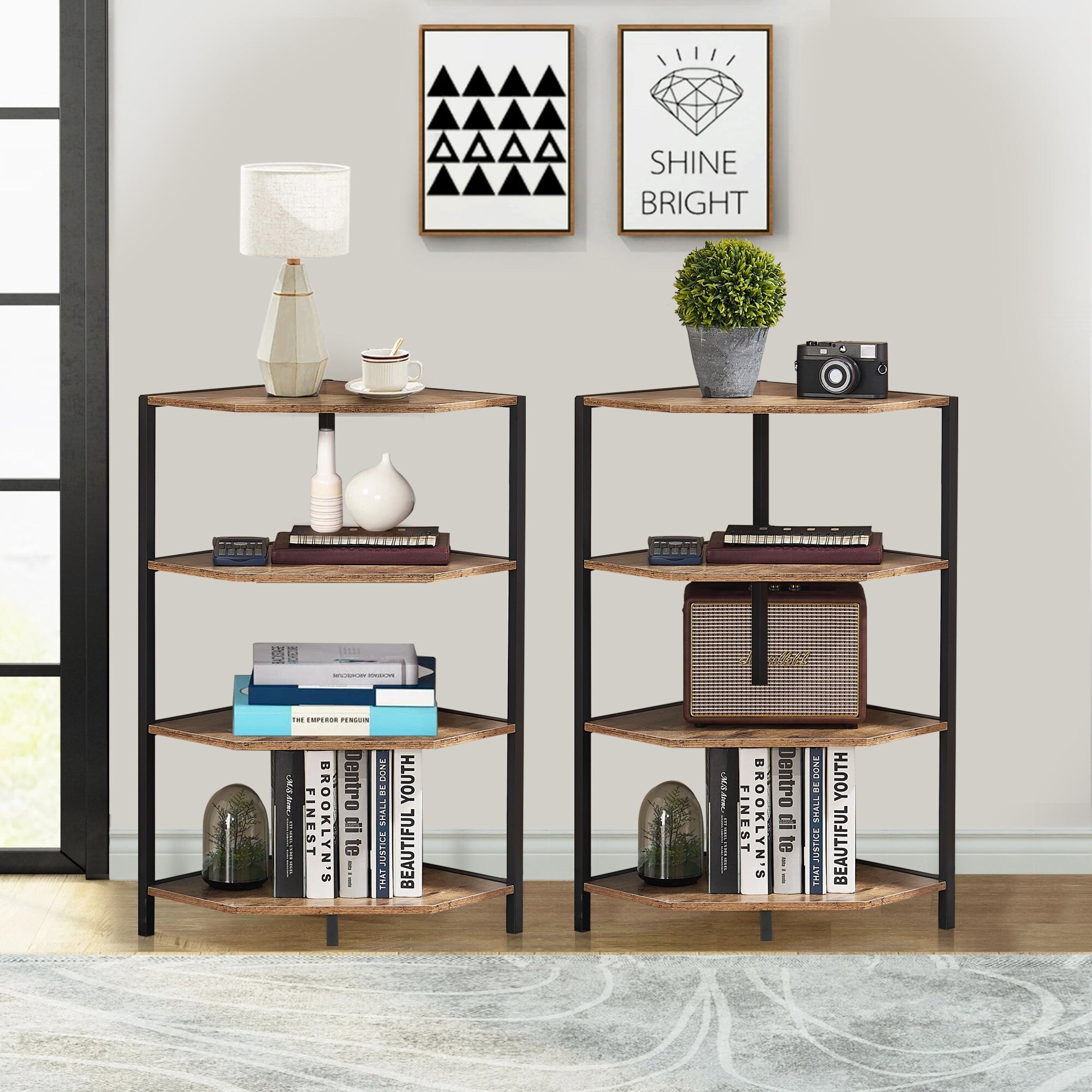 Javlergo Set of 2 Corner Shelf, Freestanding 4-Tier Wood Storage Rack