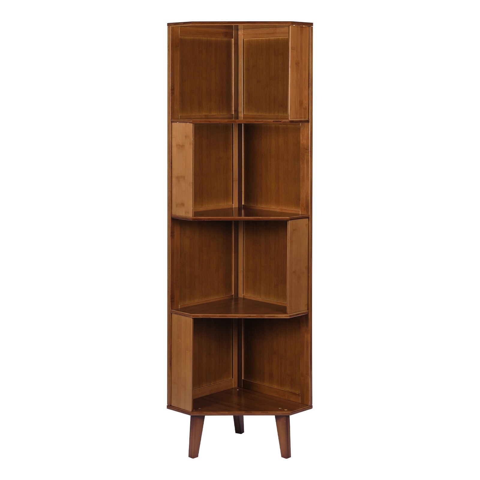 4 Tier Freestanding Bamboo Corner Shelf Storage Bookcase - N/A