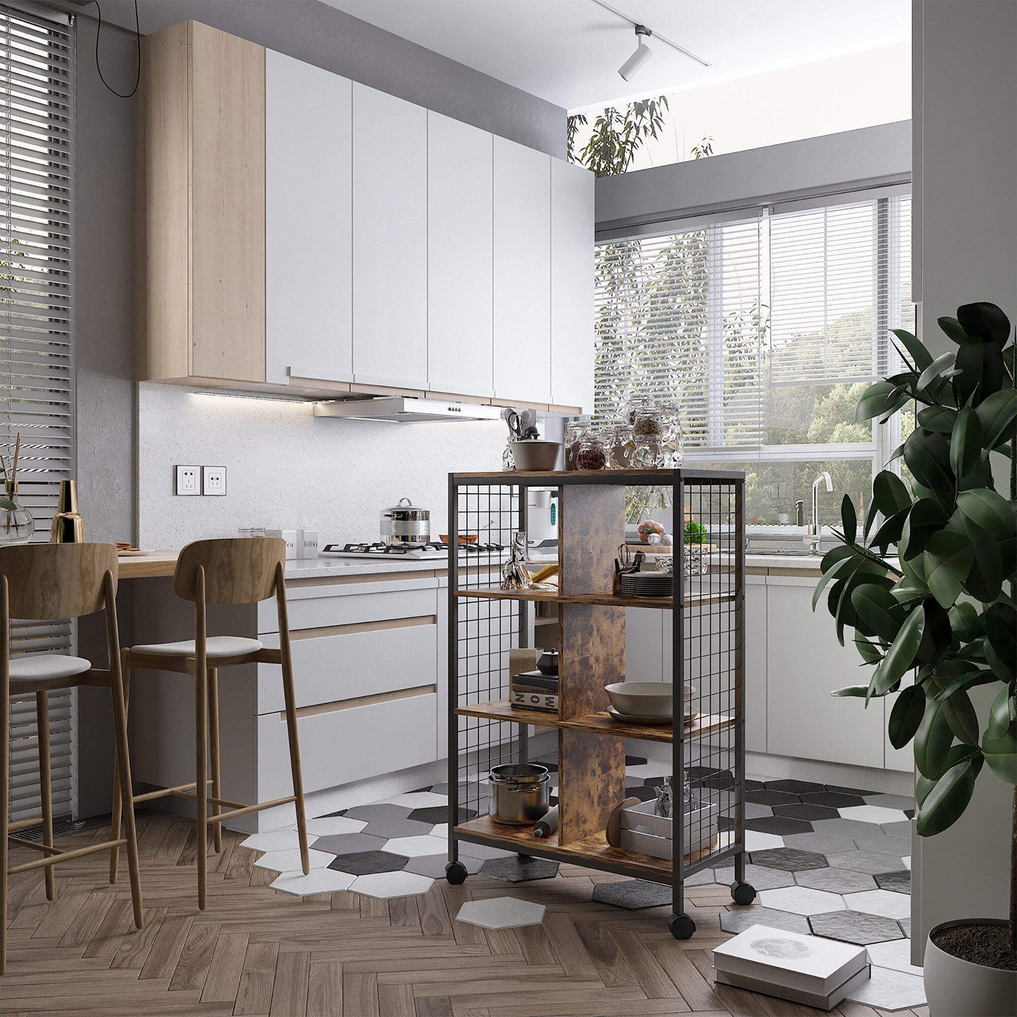 Mcombo Industrial Bookshelf Wood & Metal Bookcase, Rustic Plant Shelf 3/4/5-Shelf Storage Rack Vintage Kitchen Shelves