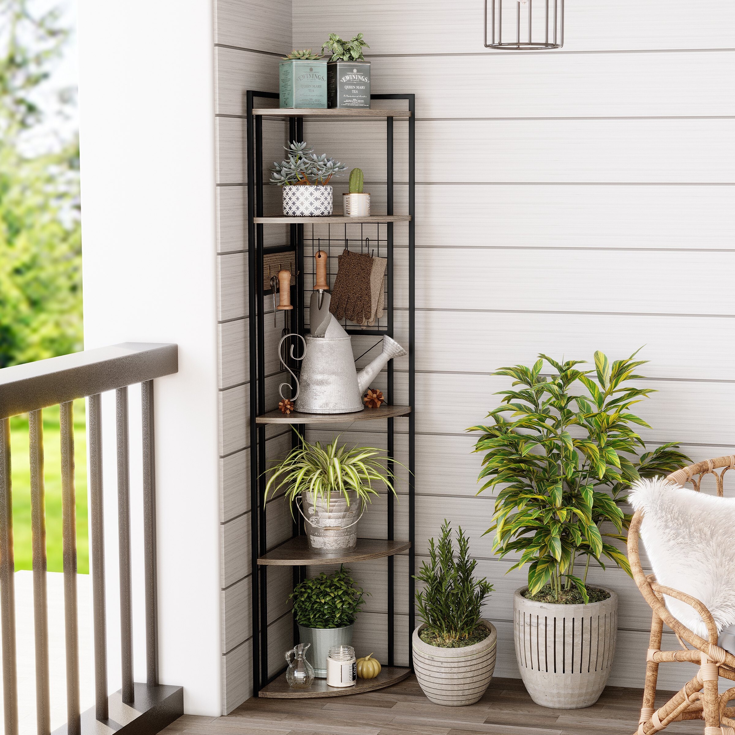 Pellebant 5-Tier Corner Shelf Bookshelf Storage Plant Shelf - 14.57in L x 14.57 W x 66.93in H