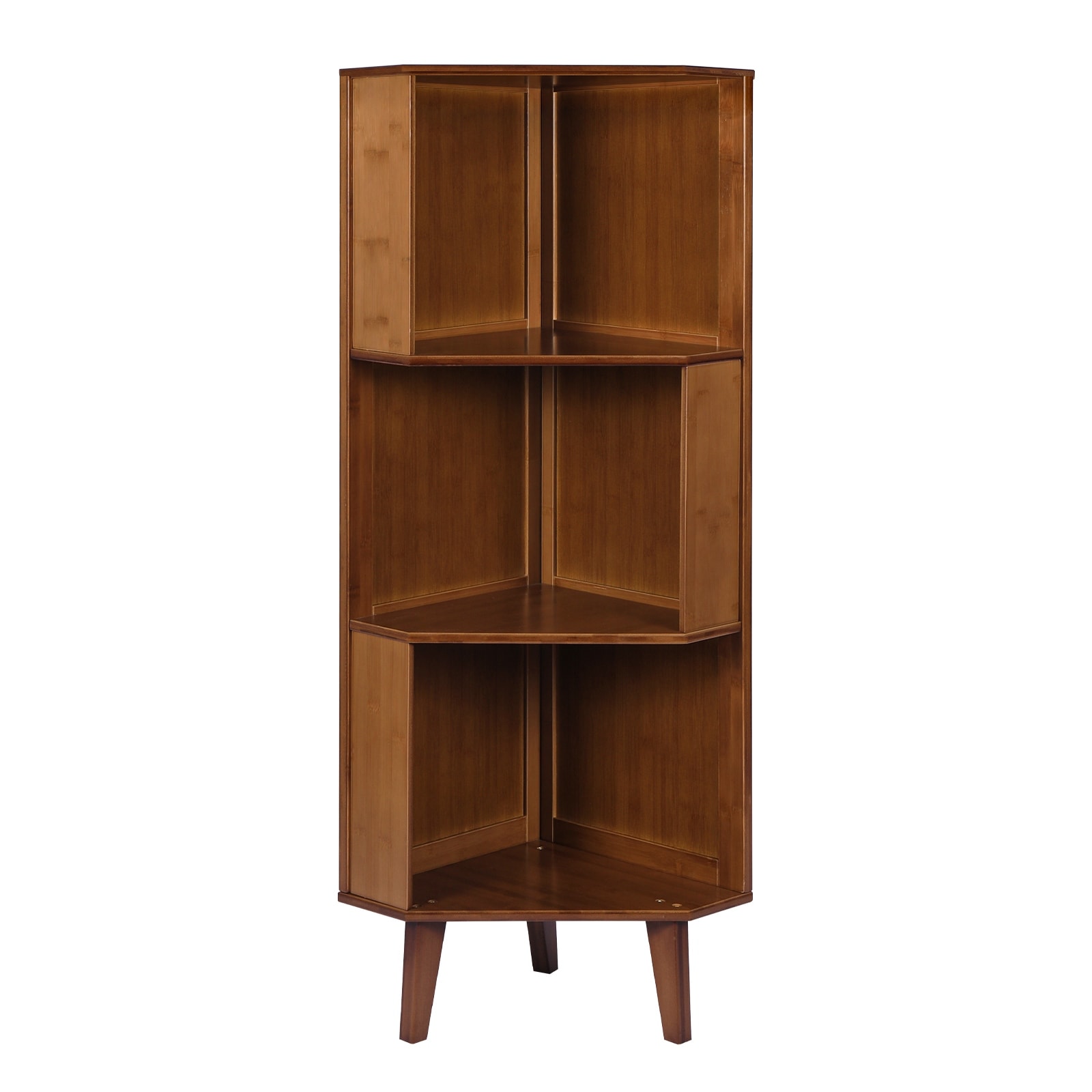 3 Tier Freestanding Bamboo Corner Shelf Storage Bookcase - N/A