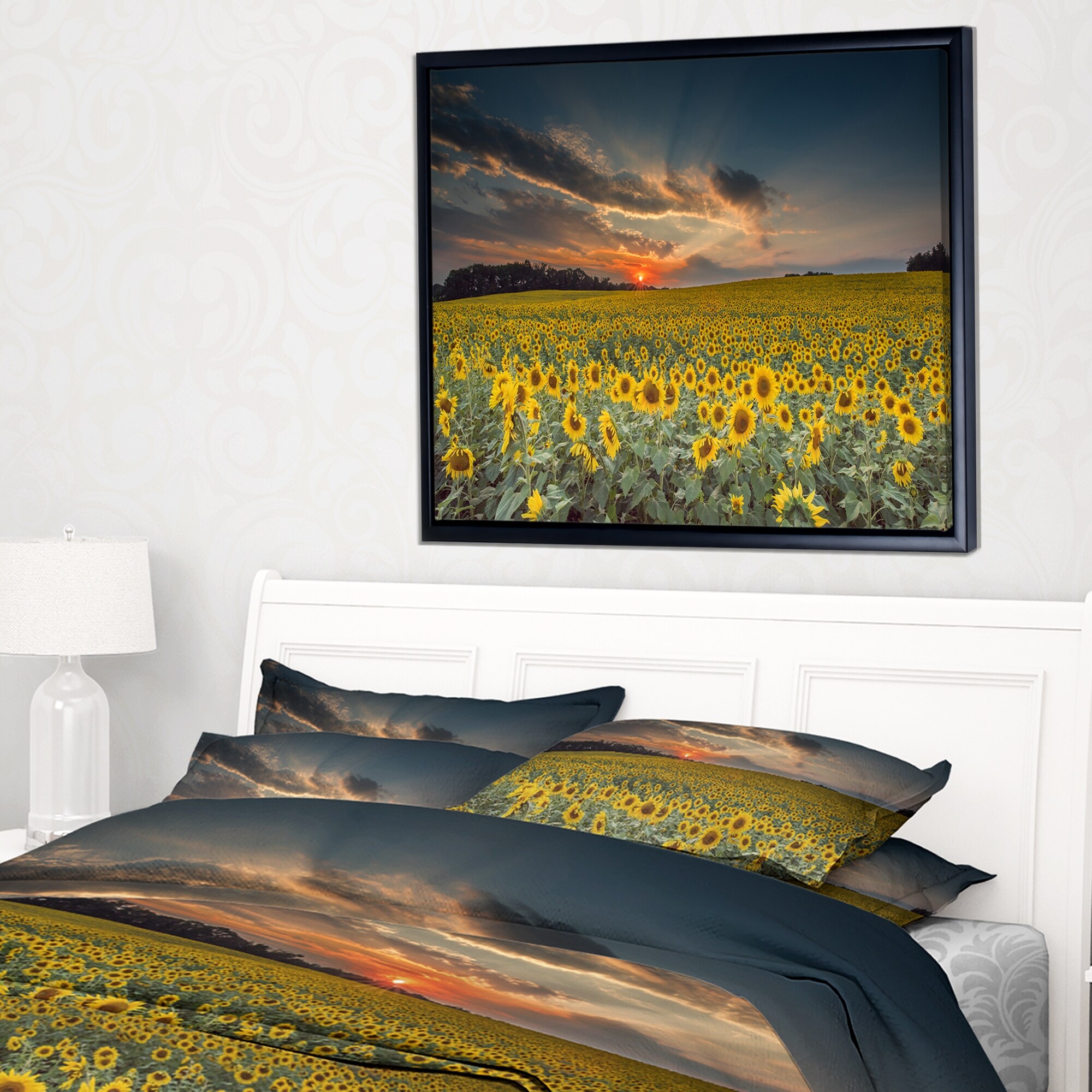 Designart "Sunflower Sunset with Cloudy Sky" Large Landscape Framed Canvas Art