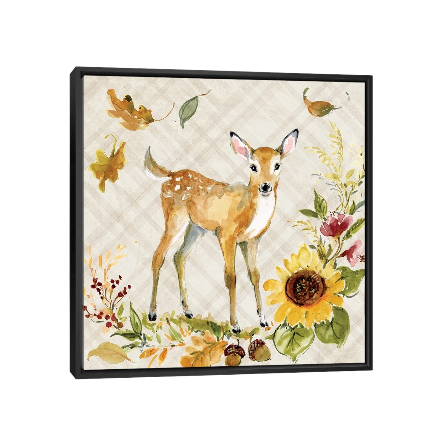 iCanvas "Deer And Sunflower" by Susan Winget Framed Canvas Print
