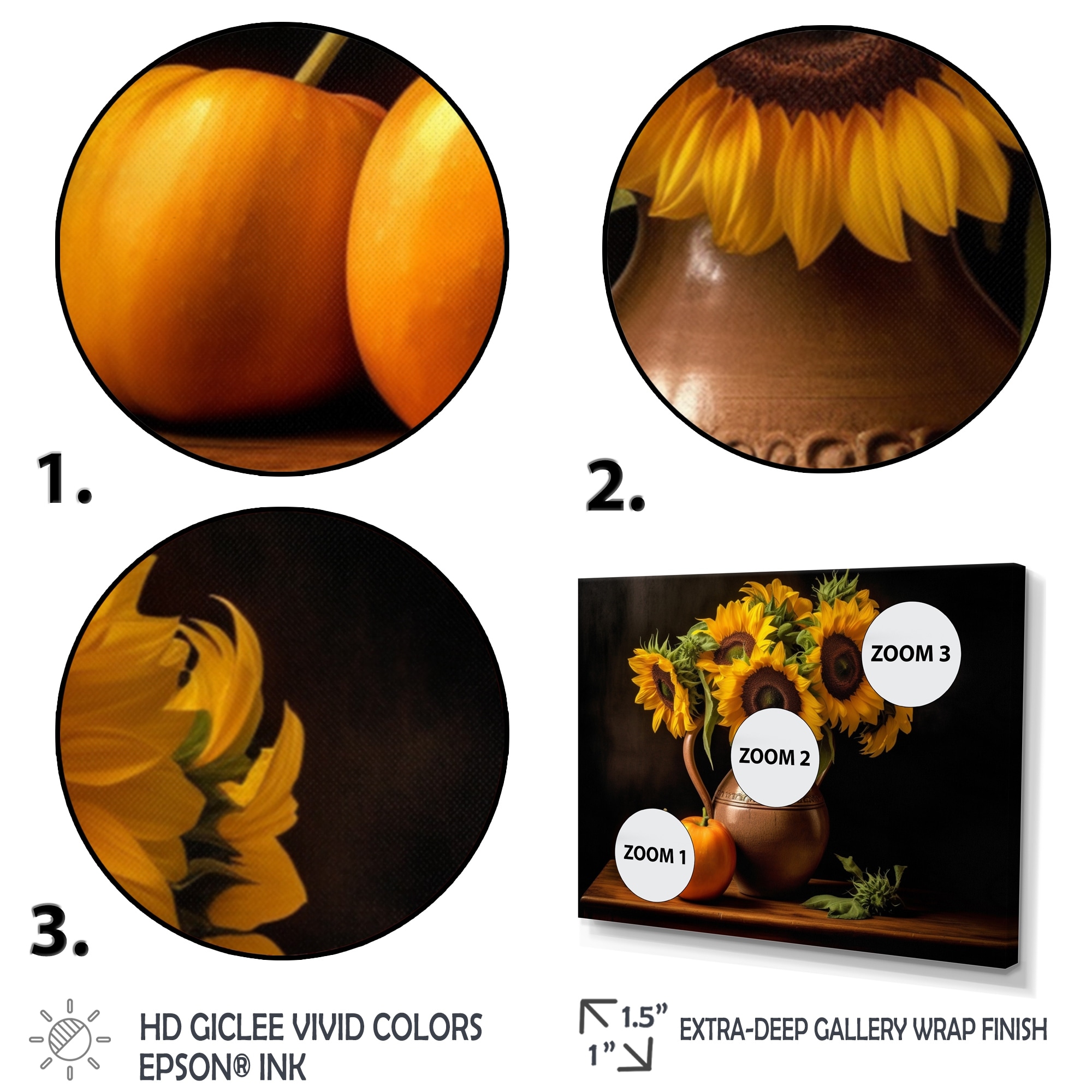 Designart "Golden Sunflower Still Life II" Sunflowers Framed Canvas Prints