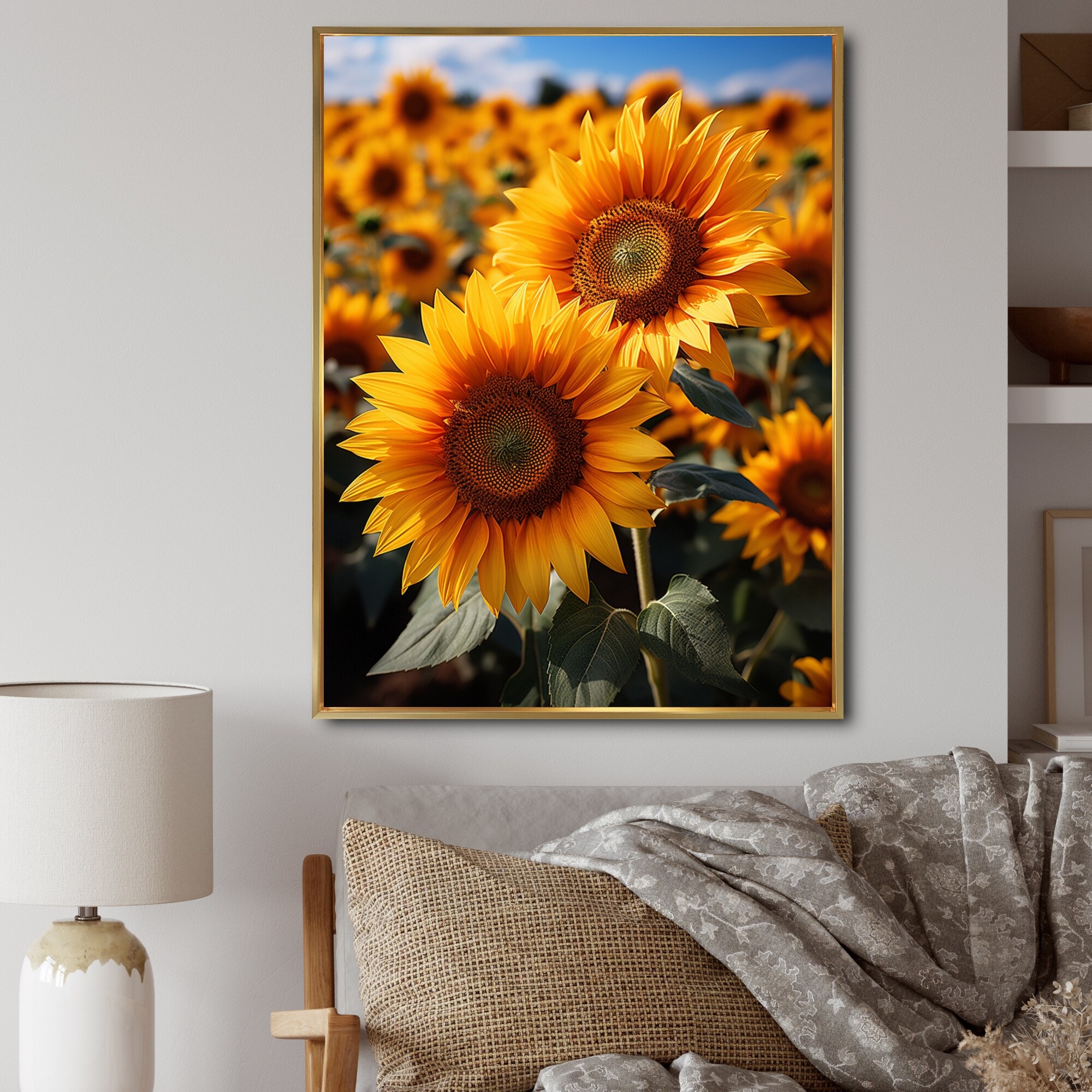 Designart "Yellow Sunflower Symphony I" Floral Sunflower Framed Canvas Art Print