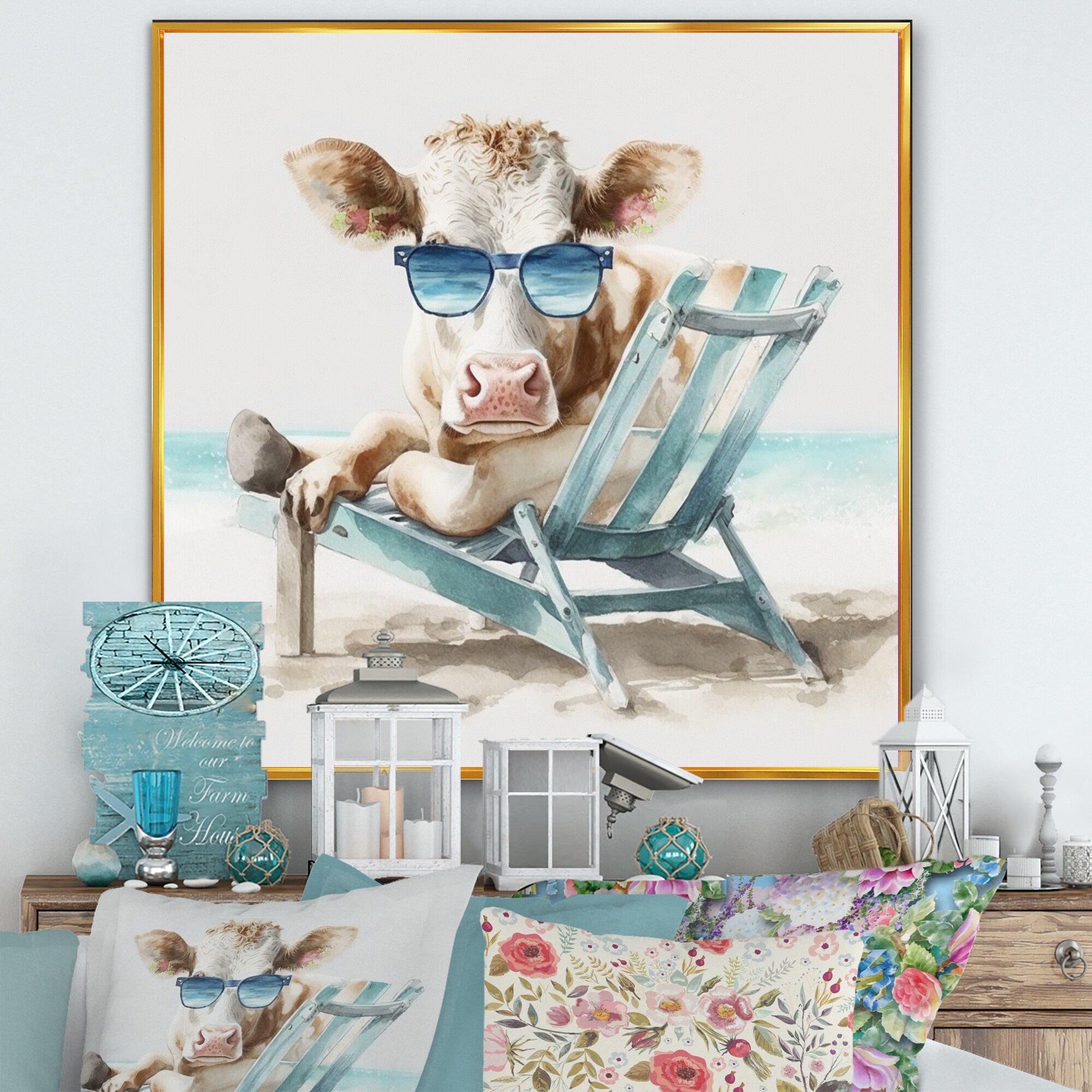 Designart "Cow Lounging With Sunglasses II" Farmhouse Framed Canvas Art Print