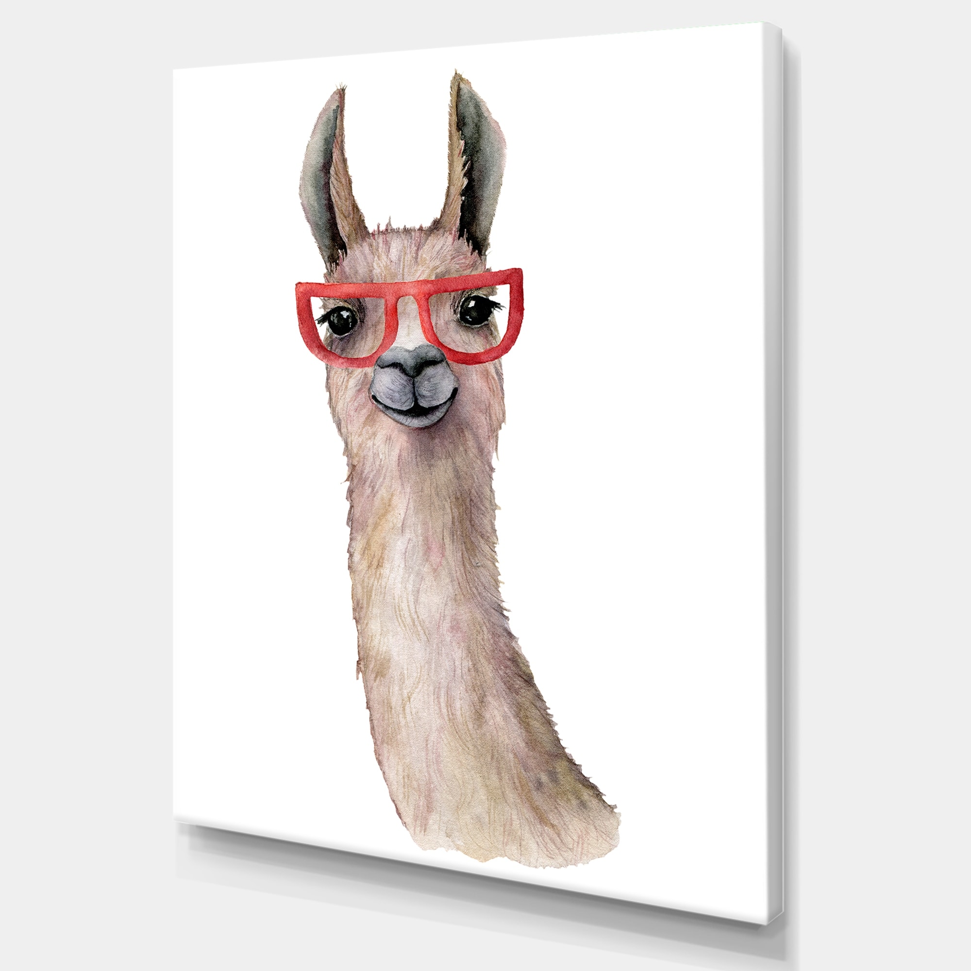 Designart "Cool Llama With Sunglasses Watercolour IV" Animals Llama Canvas Wall Art