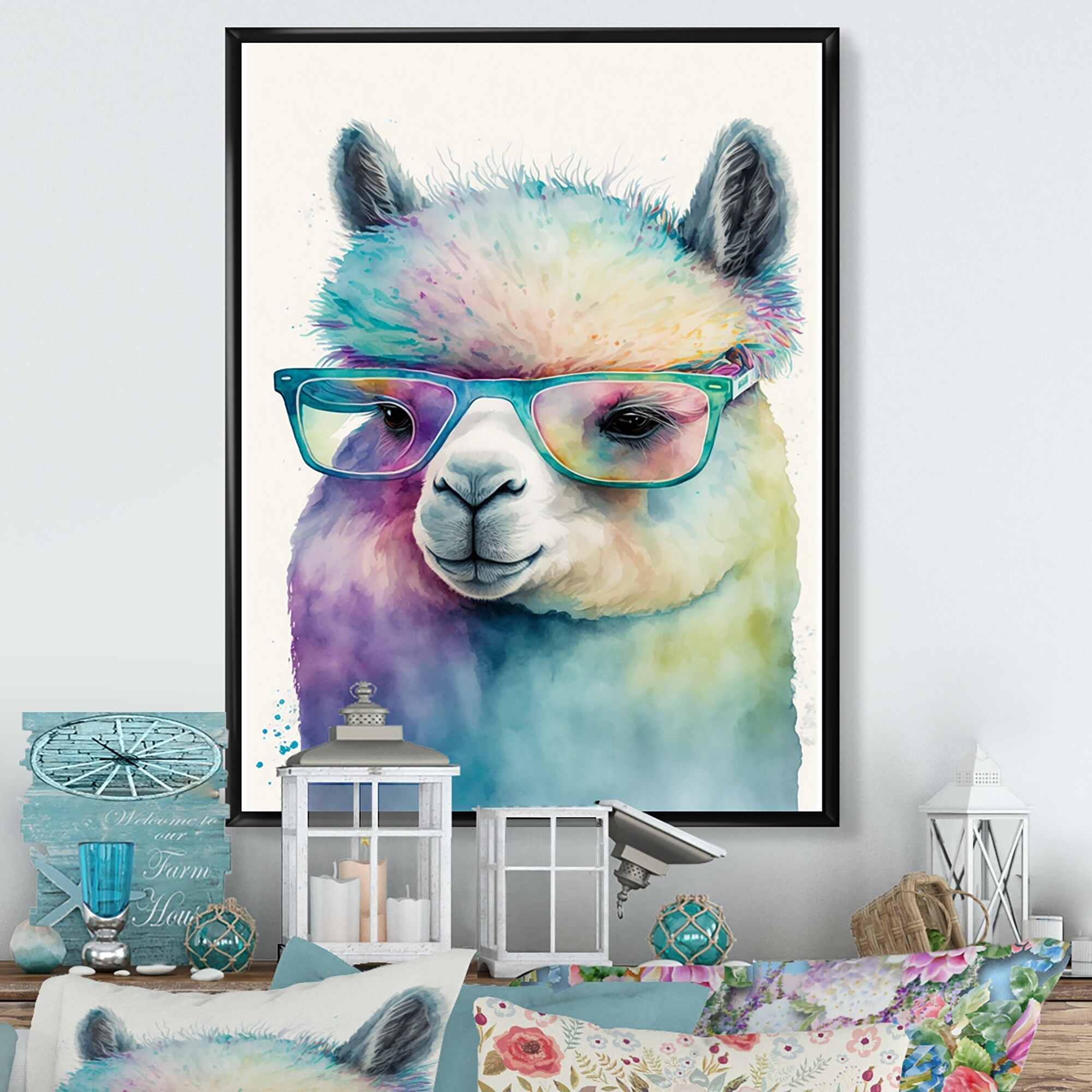 Designart "Cool Llama With Sunglasses Watercolour V" Animals Llama Canvas Wall Art