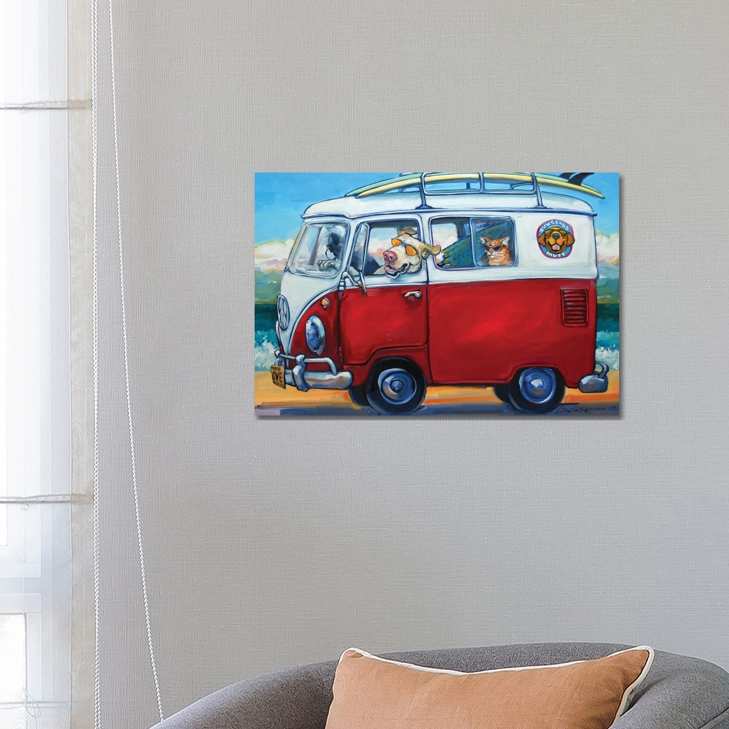 'Road Trip Happy Dog with Red Sunglasses' Stretched Canvas Wall Art