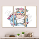Designart "Giraffe With A Blue Hat And Red Sunglasses" Children's Art Framed Art Prints Set of 3 - 4 Colors of Frames