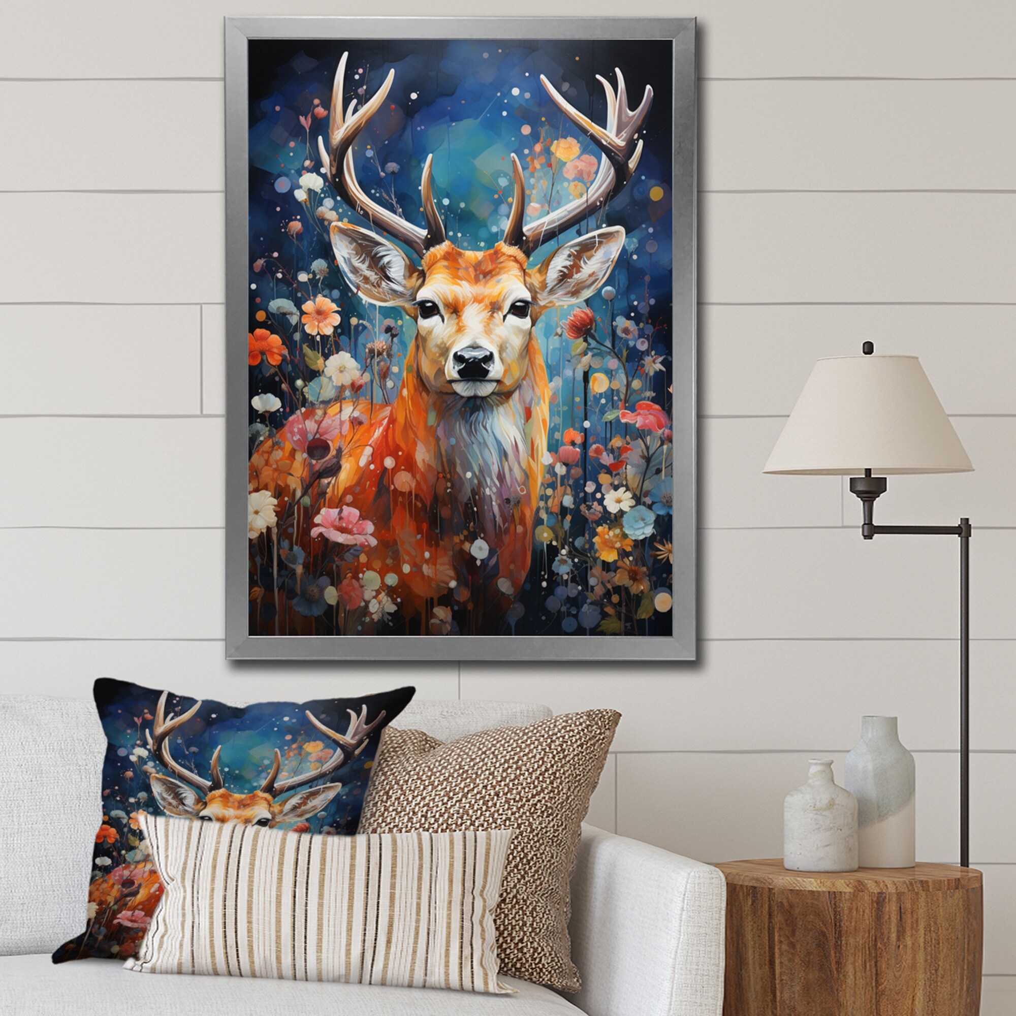 Designart "Animal Deer Symphony of Forest I" Animals Deer Framed Canvas Wall Art