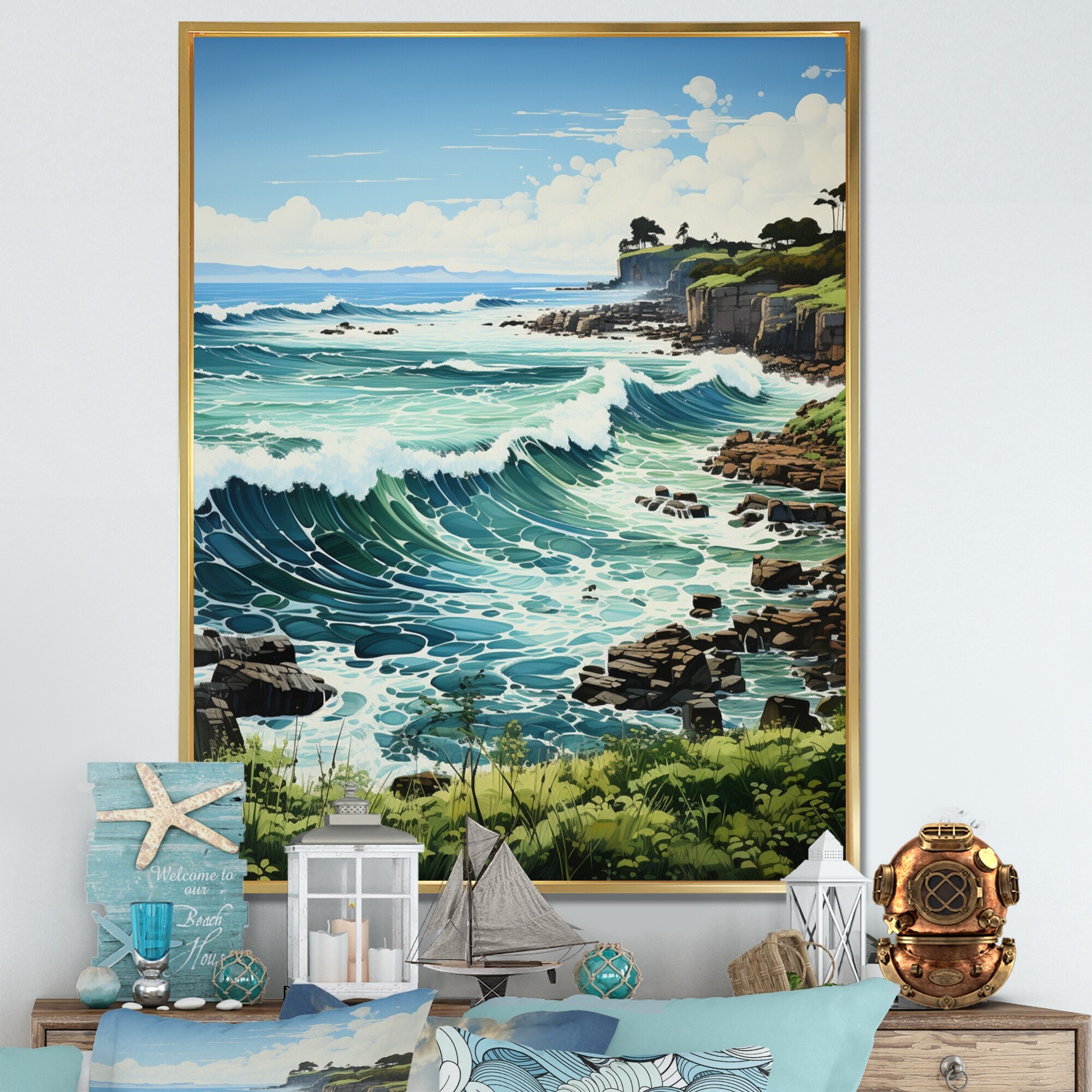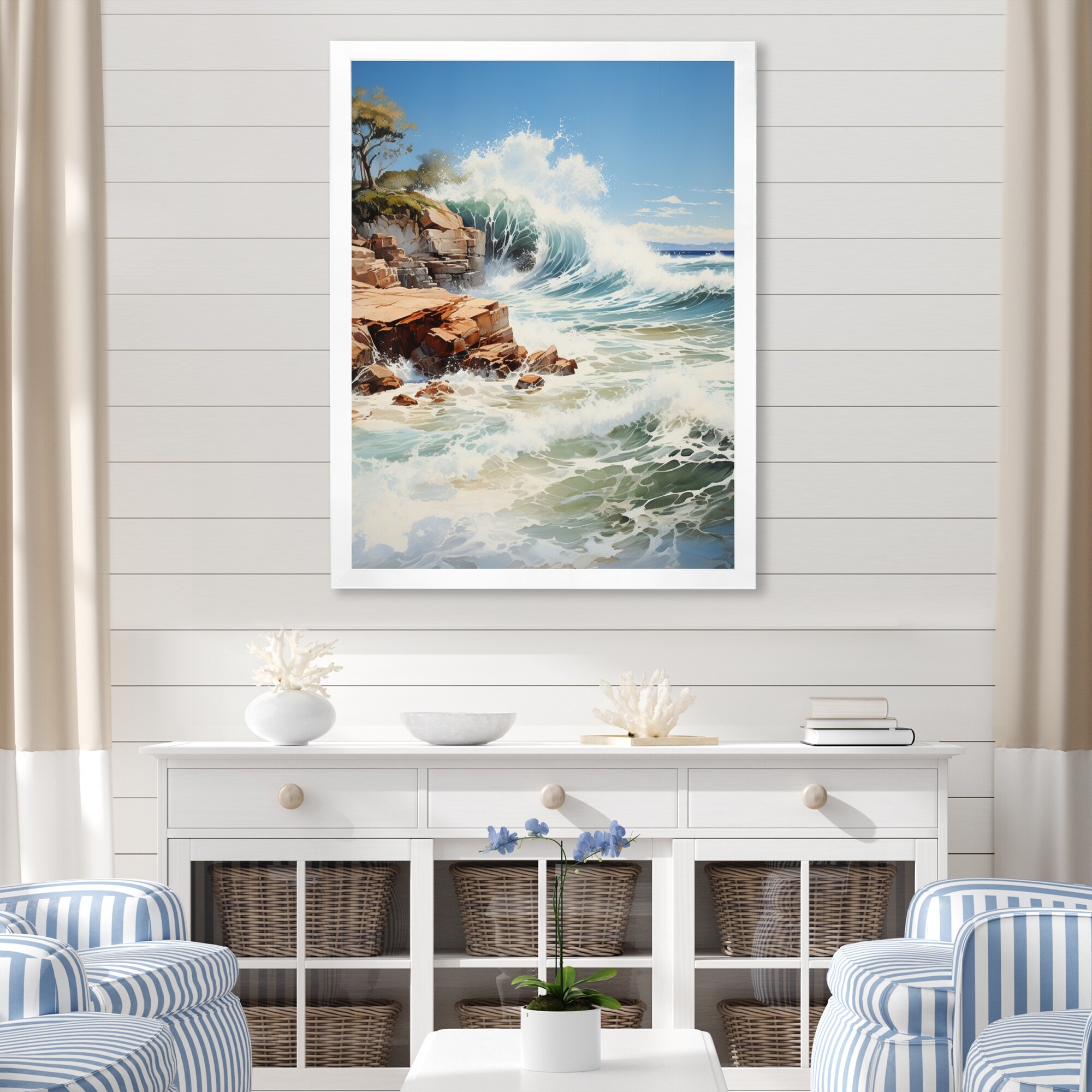 Designart "Coastalocean Coastal Symphony Pastoral I" Coastal Ocean Framed Wall Art Living Room