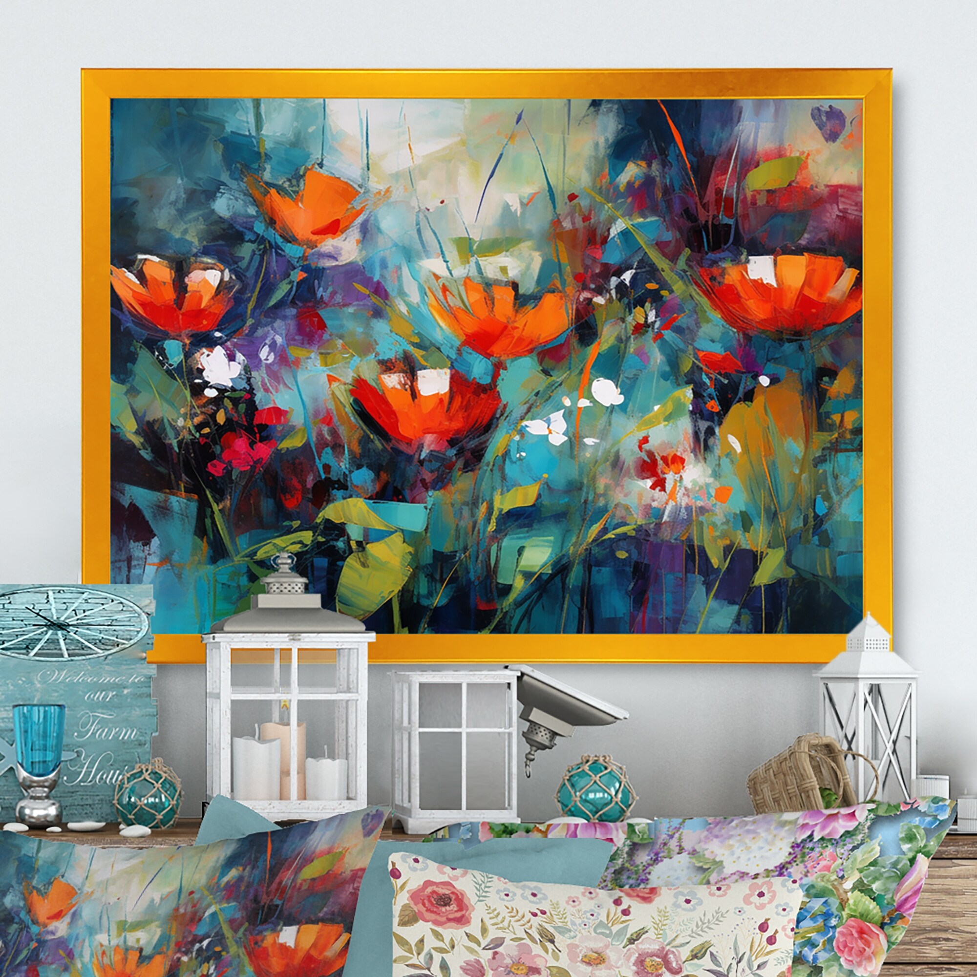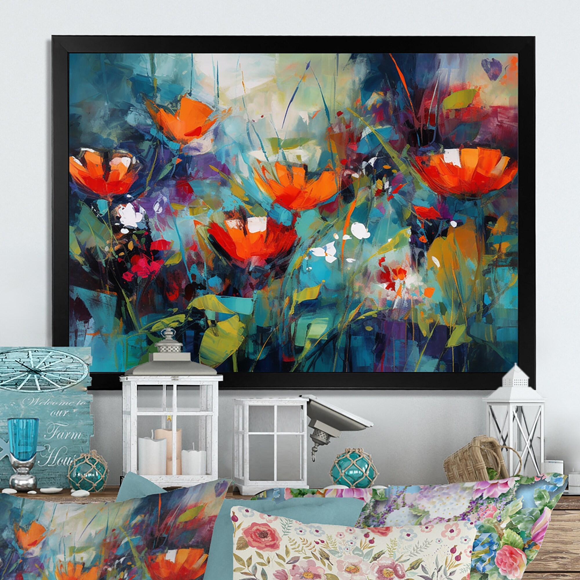 Designart "Red Vibrant Garden Symphony Ii" Floral Framed Wall Art Prints