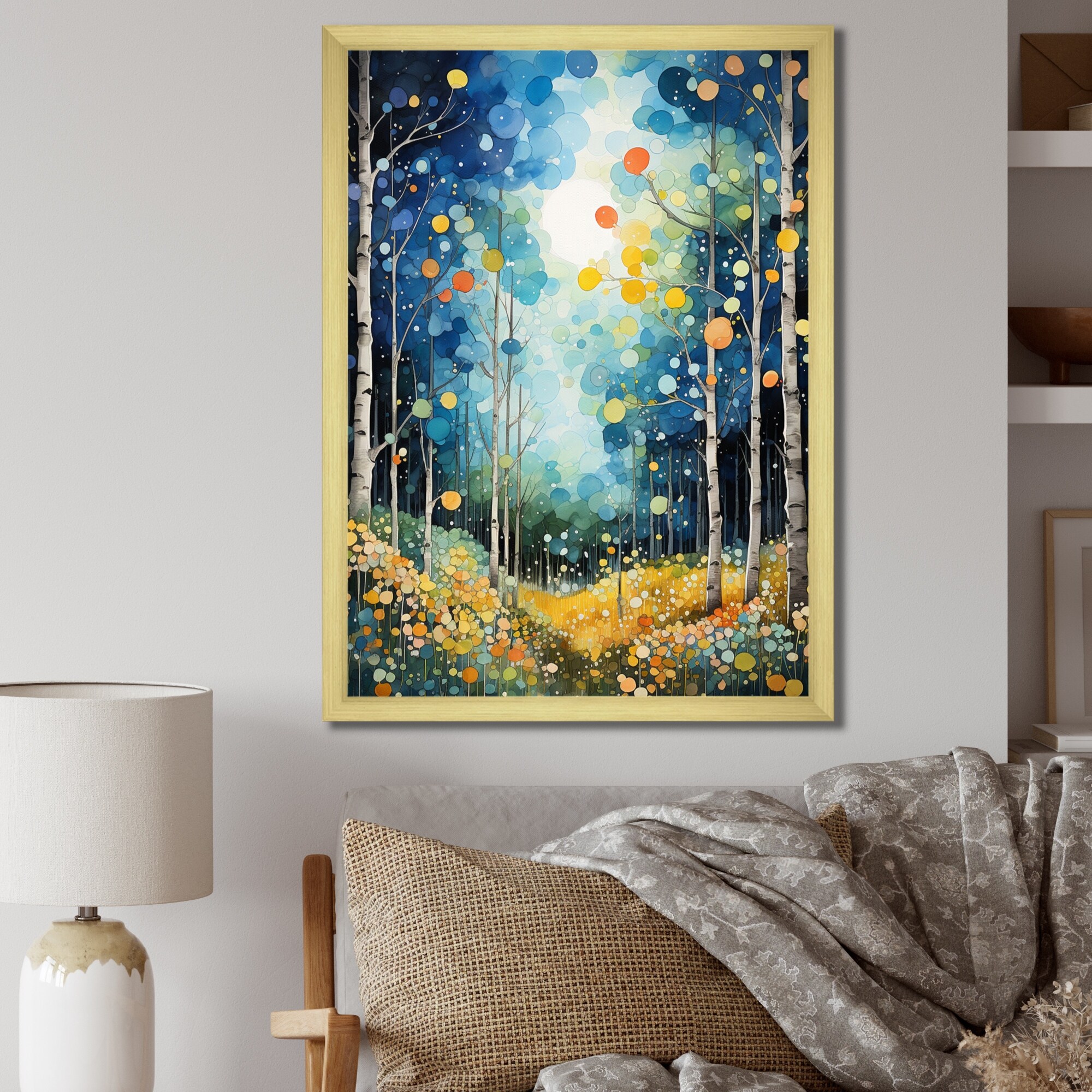 Designart "Forest Silent Symphony Pointillism II" Forest Framed Canvas Print