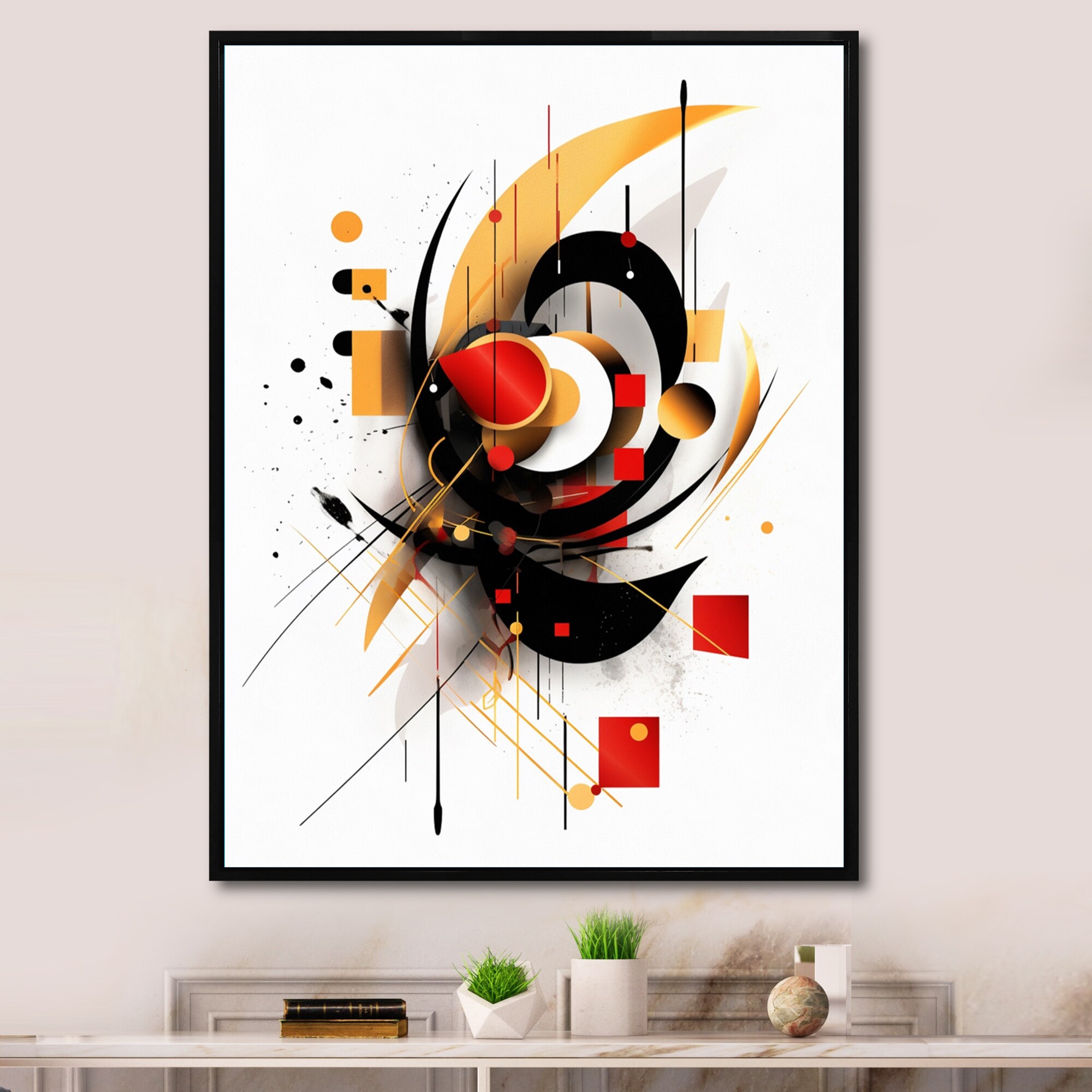 Designart "Red Black Abstract Symphony V" Abstract Shapes Framed Wall Decor