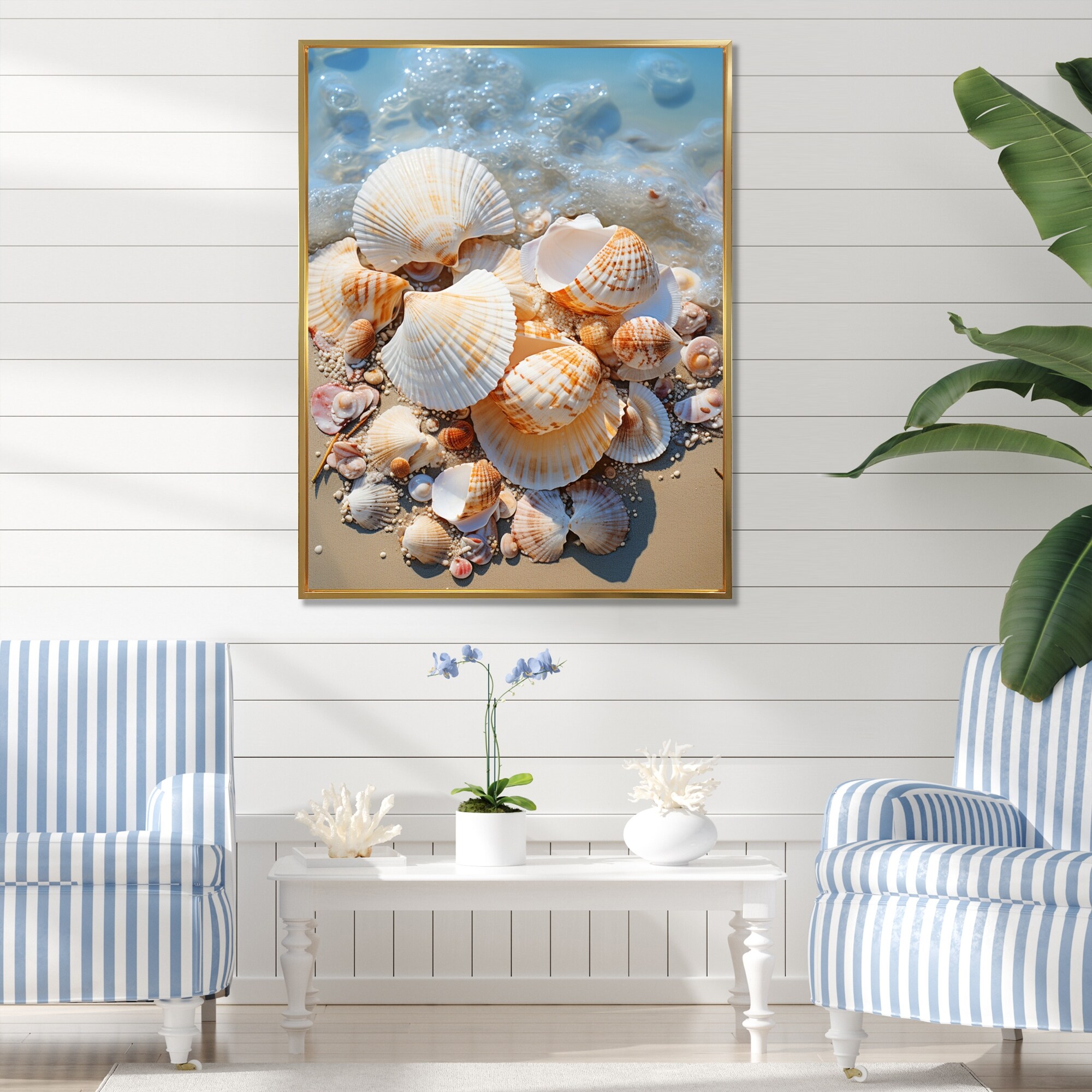 Designart "Beach Photo Seashell Symphony II" Coastal Animal Framed Wall Decor