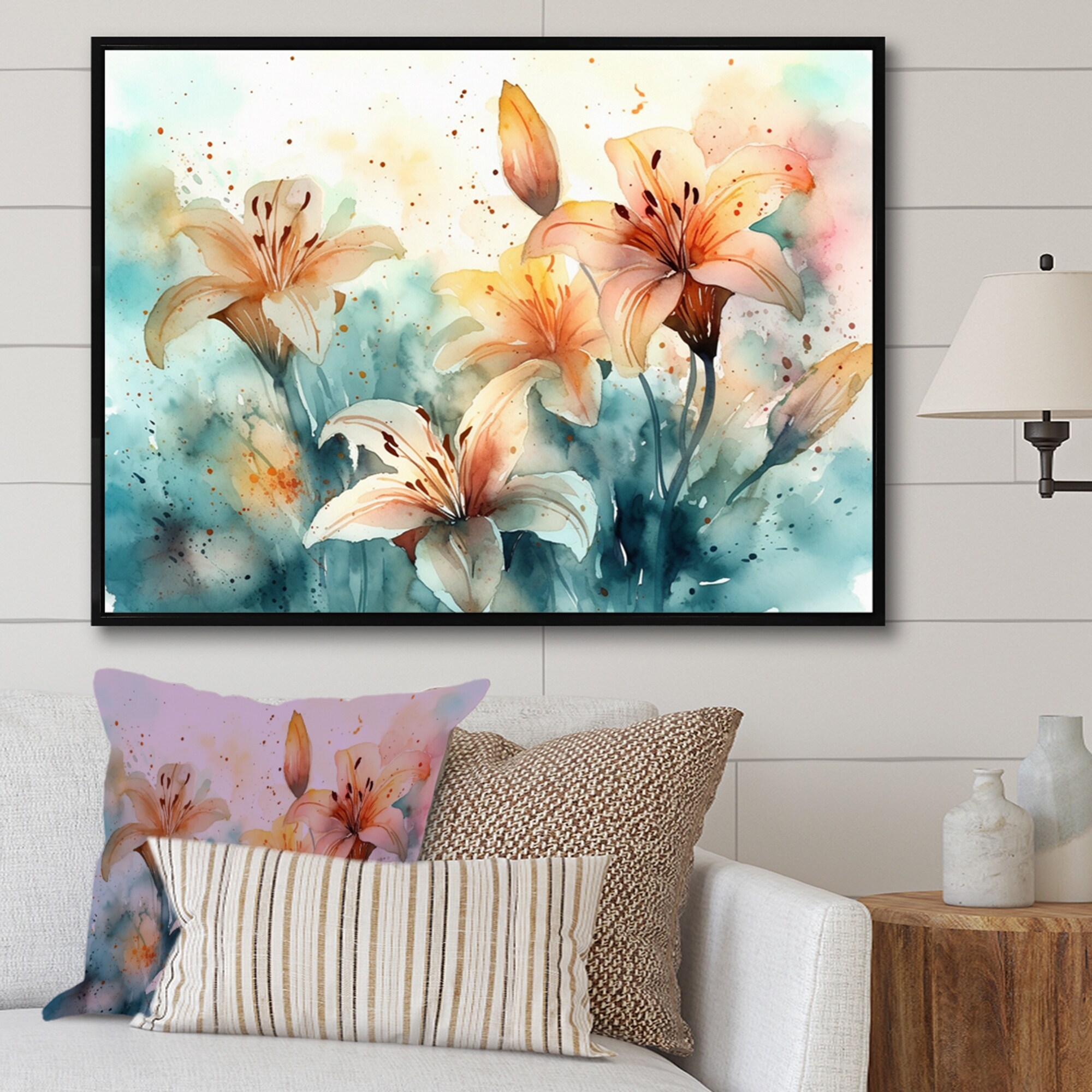 Designart "Orange Lily Symphony Ii" Floral Lily Framed Canvas Print
