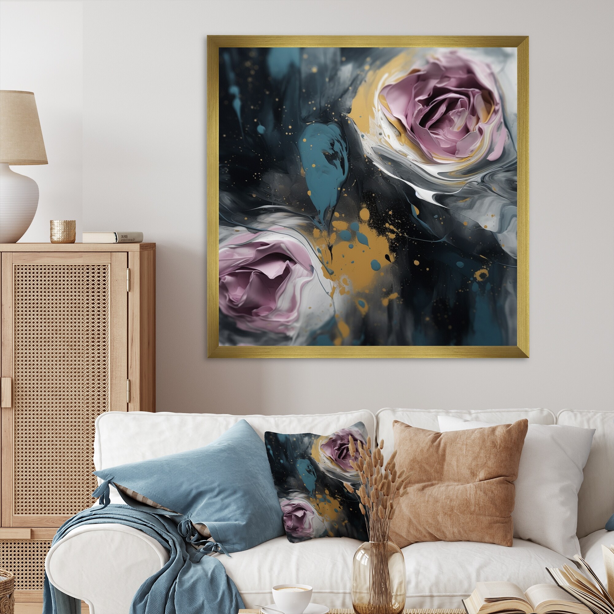 Designart "Purple Rose Symphony" Floral Rose Framed Wall Decor