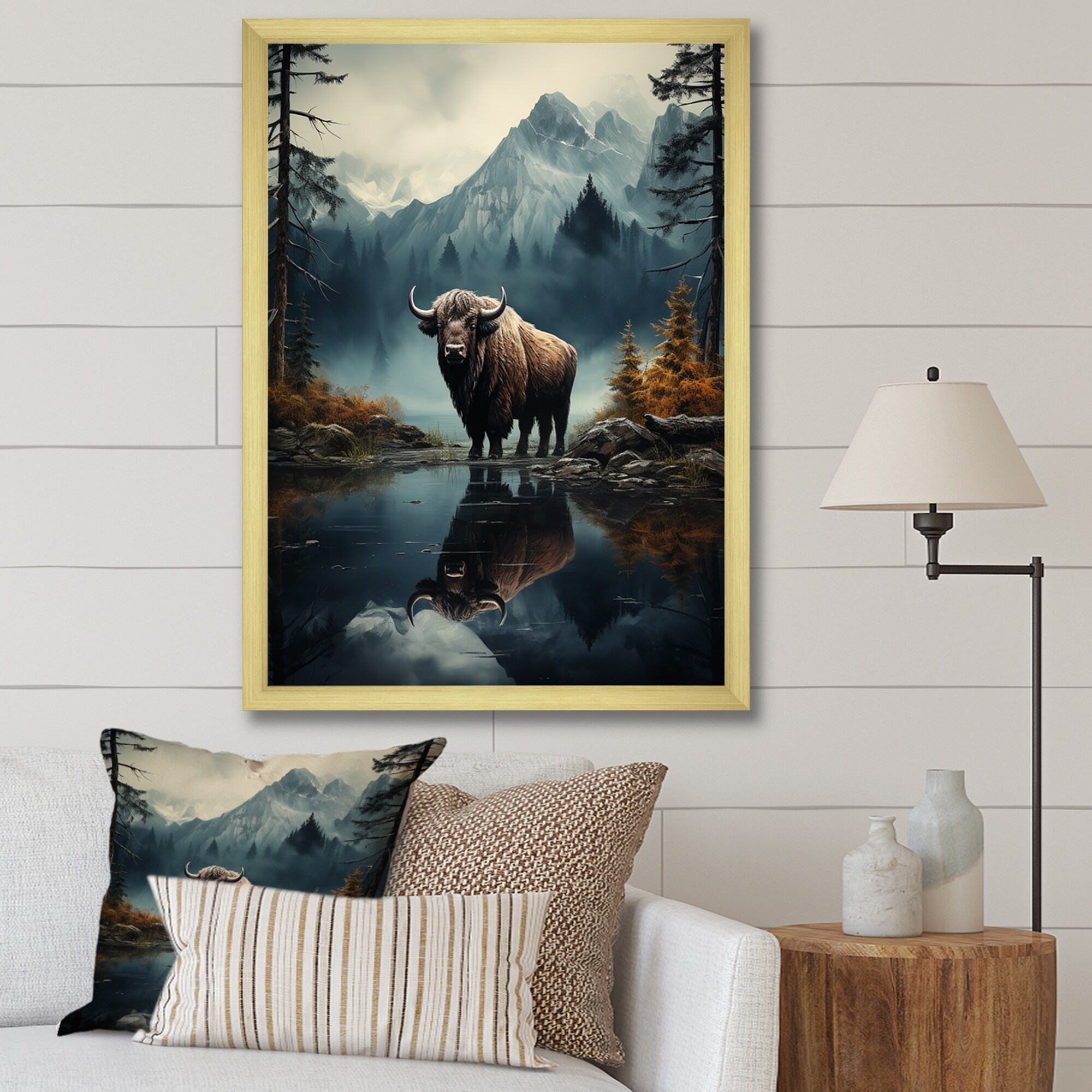Designart "Brown Teal Moose Twilight Symphony" Moose Framed Canvas Prints