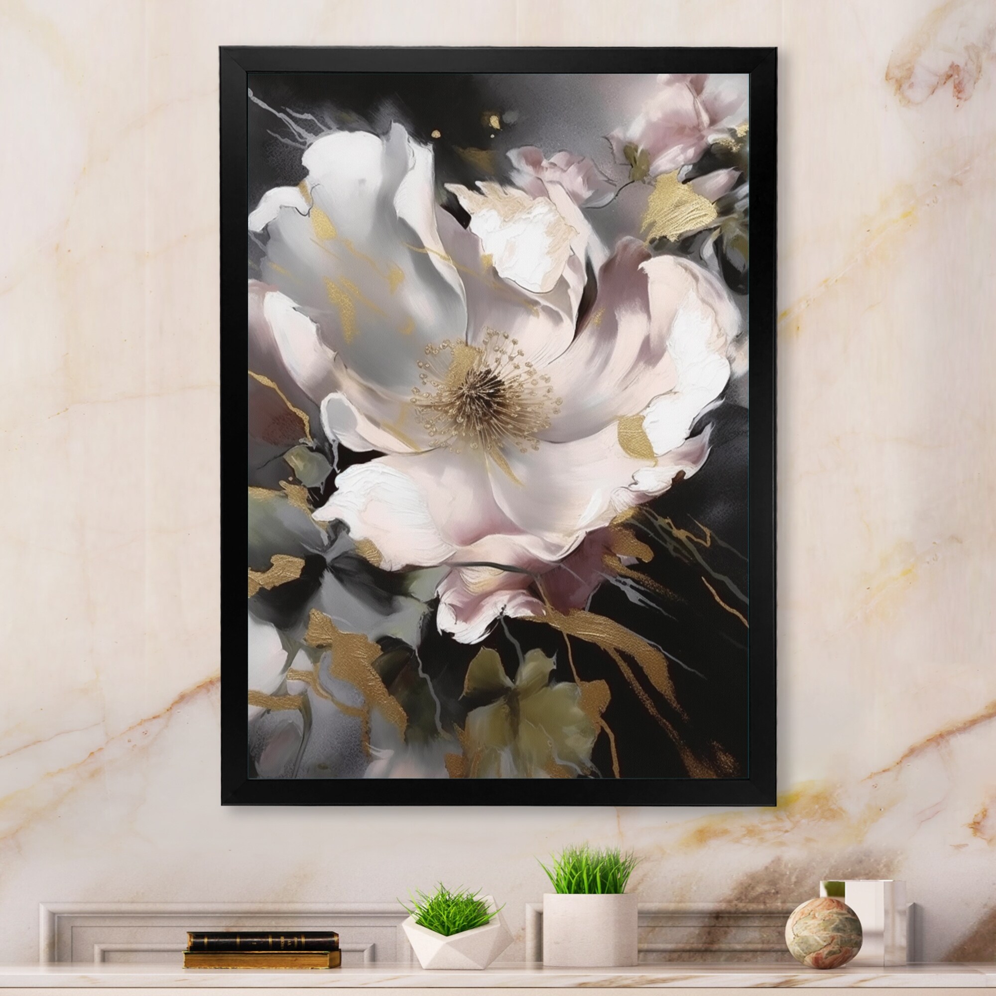 Designart "White And Gold Daisy Symphony I" Floral Daisy Framed Wall Art for Living Room